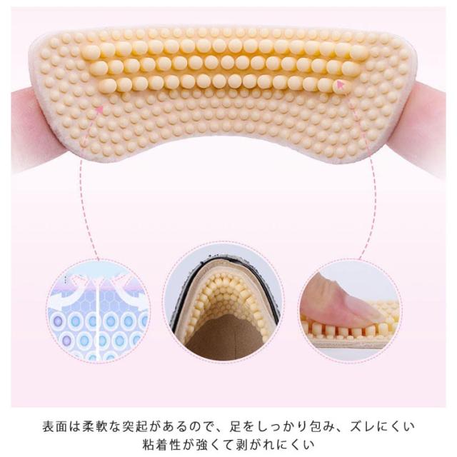 かかとクッション かかとパッド 靴擦れ防止 レディース 踵脱げ 送料無料 保護パッド ふんわり 踵パッド シリコン粒 痛み軽減 パカパカ 滑り止め 両面テープ付 靴対応 サイズ調整用 男女兼用 3足6枚入り