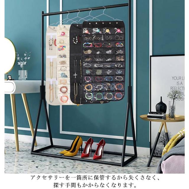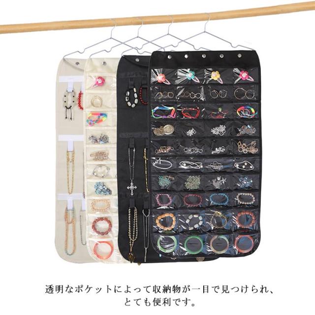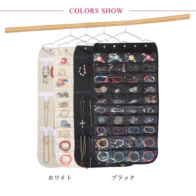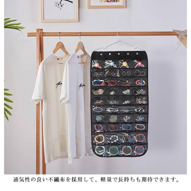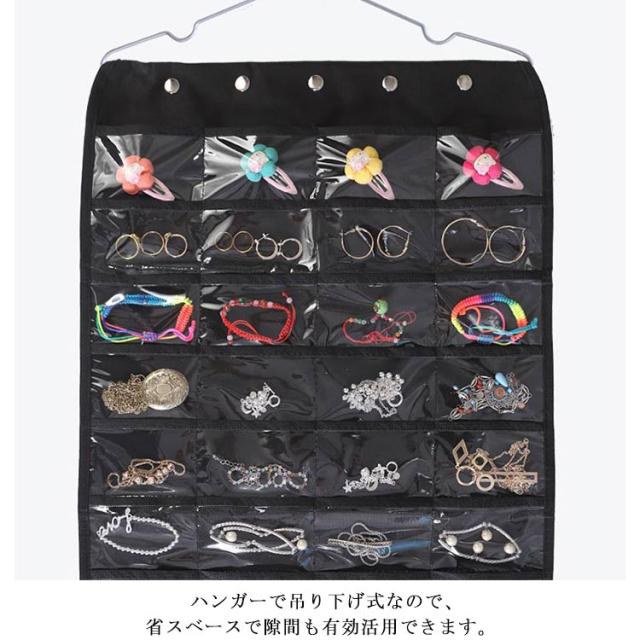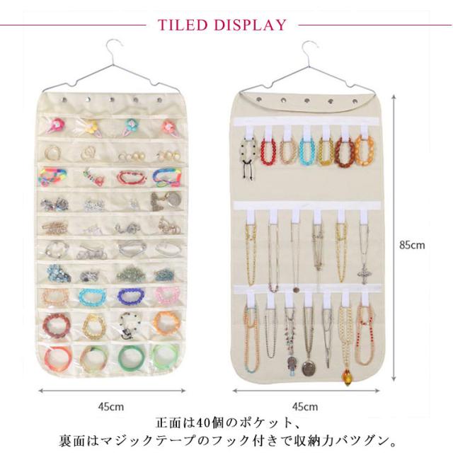 | アクセサリーを一箇所に保管するから失くさなく、探す手間もかからなくなります。 ハンガーで吊り下げ式なので、省スベースで隙間も有効活用できます。 透明なポケットによって収納物が一目で見つけられ、とても便利です。 正面は40個のポケット、裏面はマジックテープのフック付きで収納力バツグン。 通気性の良い不繊布を採用して、軽量で長持ちも期待できます。 | |