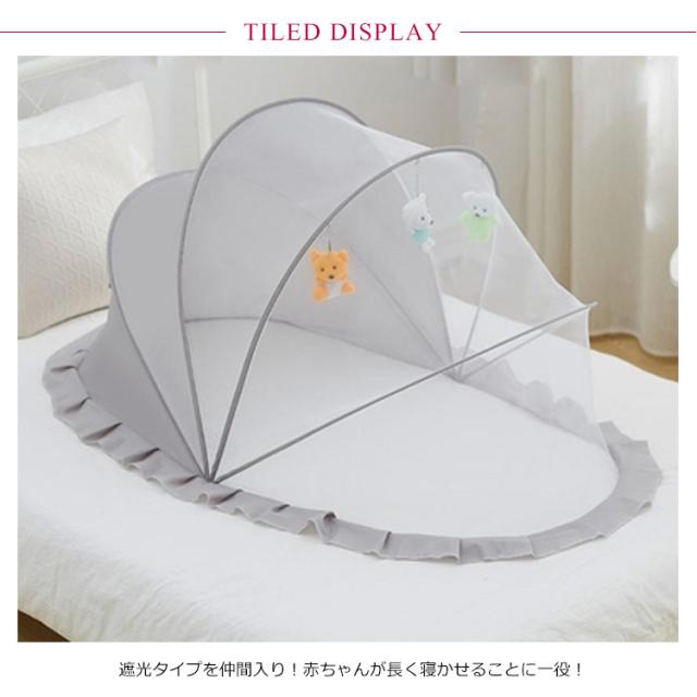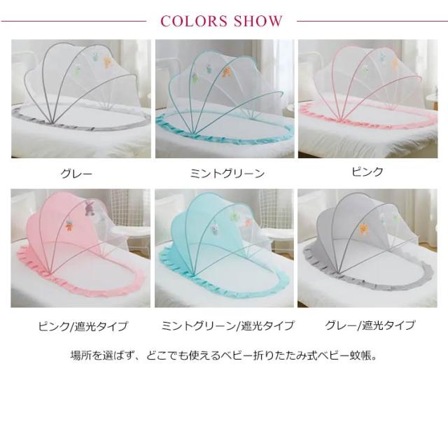 | 場所を選ばず、どこでも使えるベビー折りたたみ式ベビー蚊帳。 遮光タイプを仲間入り!赤ちゃんが長く寝かせることに一役! 簡単ワンタッチデザイン、ベットの上や、床、ソファー、畳の上にかぶっただけ! 花粉、虫刺されや冷房の冷えから肌の弱い赤ちゃんを守る。 折りたたみ式ので、場所を取らず収納できるから省スペース。 | |