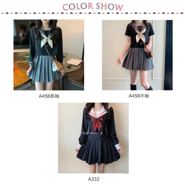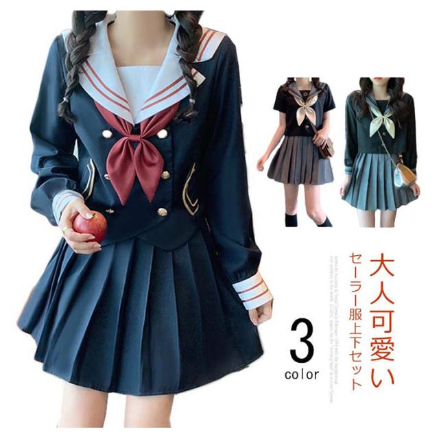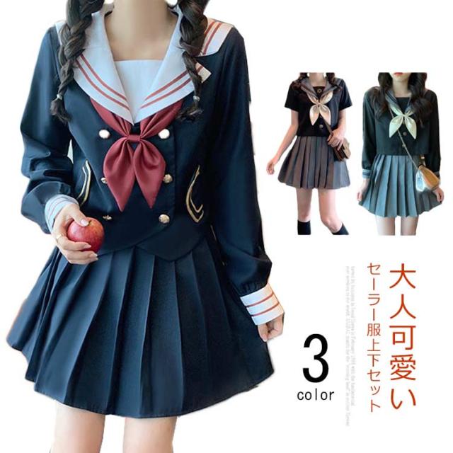 送料無料 セーラー服 3点セット 上下セット 長袖 半袖 学生服 夏 スカート コスプレ 服 コスチューム ハロウィン 学園祭 イベント 仮装 服 定番 可愛い