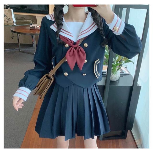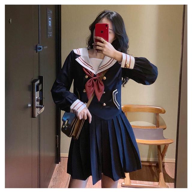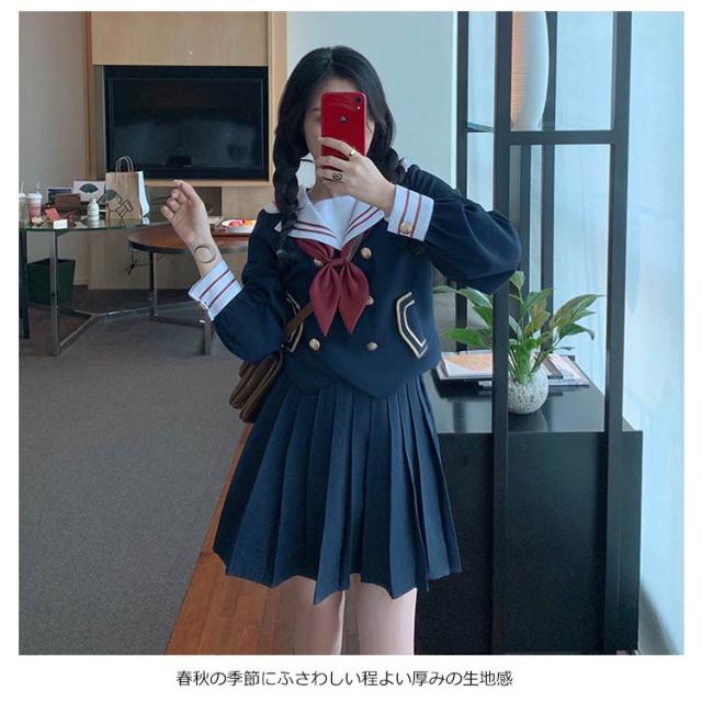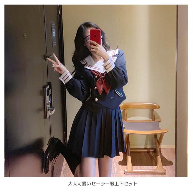 | 大人可愛いセーラー服上下セット ふんわり揺れる可愛いプリーツスカート 春秋の季節にふさわしい程よい厚みの生地感 幅広いシーンで活躍できるセーラー服 | |