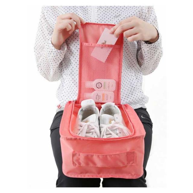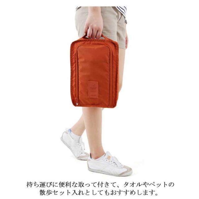 | 旅行やキャンプに持って行くシューズの持ち運びに便利なシューズバッグ。 ポケットもあり手袋・靴下などの小物の入れれるので便利です。 30*21*11.5cmの大容量で、スニーカーやハイヒールなどもスッキリと収まります。 学校行事の上履き入れや、ニオイで気になる使用済みの下着入れにも使えます。 持ち運びに便利な取って付きて、タオルやペットの散歩セット入れとしてもおすすめします。 | |