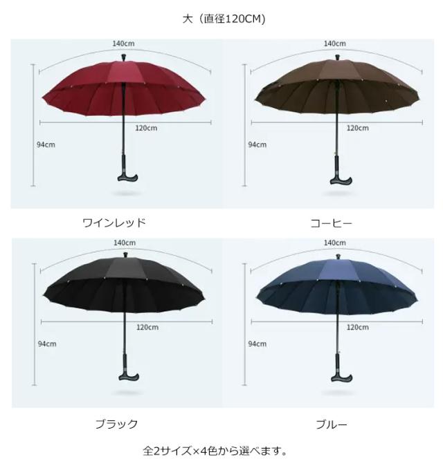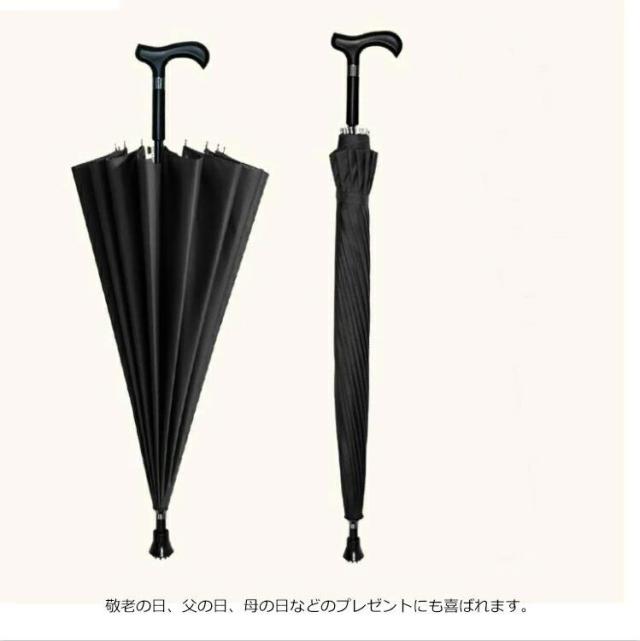 ステッキ傘 杖傘 長傘 ステッキアンブレラ 超大型 雨傘 撥水 16本骨 ジャンプ傘 大判 ワンタッチ 自動 杖 ステッキ 歩行補助 高齢者 祖父 父 母 60代 70代 80代 無地