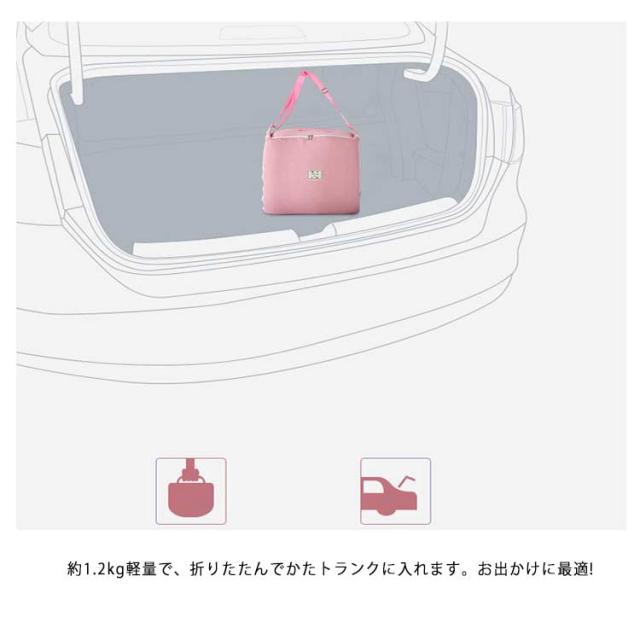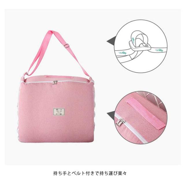 | 持ち転び便利なバッグに変身 クッションのような素材で柔らかくて衛生です。 足元のリボンを外して、赤ちゃんの身長に合わせて、長くご使用いただけます 持ち手とベルト付きで持ち運び楽々 ジッパー式のカバーで取り外し可能 ポケット付きで哺乳瓶などの小物を収納できます。 約1.2kg軽量で、折りたたんでかたトランクに入れます。お出かけに最適! 水洗える | |