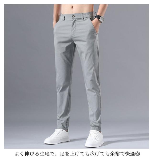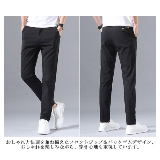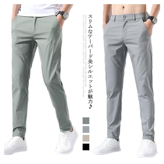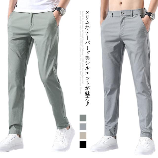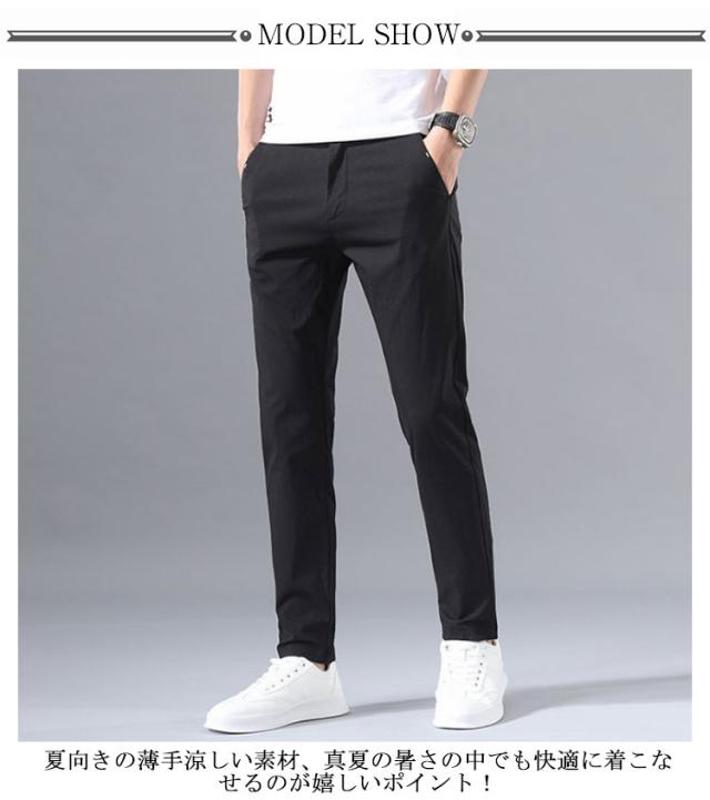 チノパンツ 涼感 メンズ ストレート スキニー パンツ 送料無料 薄手 ひんやり チノパン ストレッチ ストレートパンツ カジュアルパンツ ウェストゴム テーパードパンツ リラックス イージーパンツ