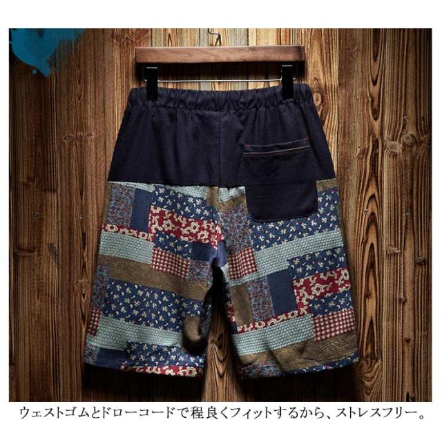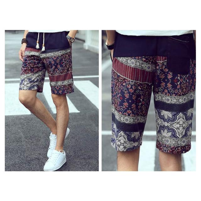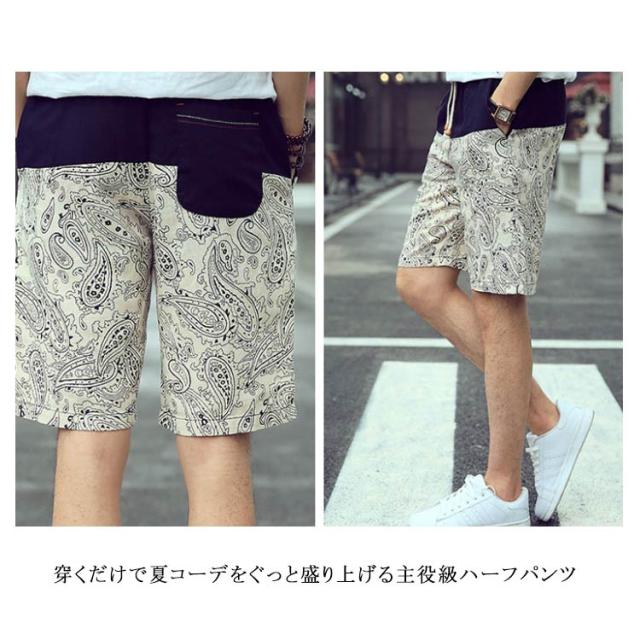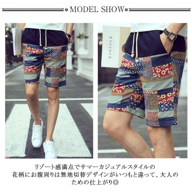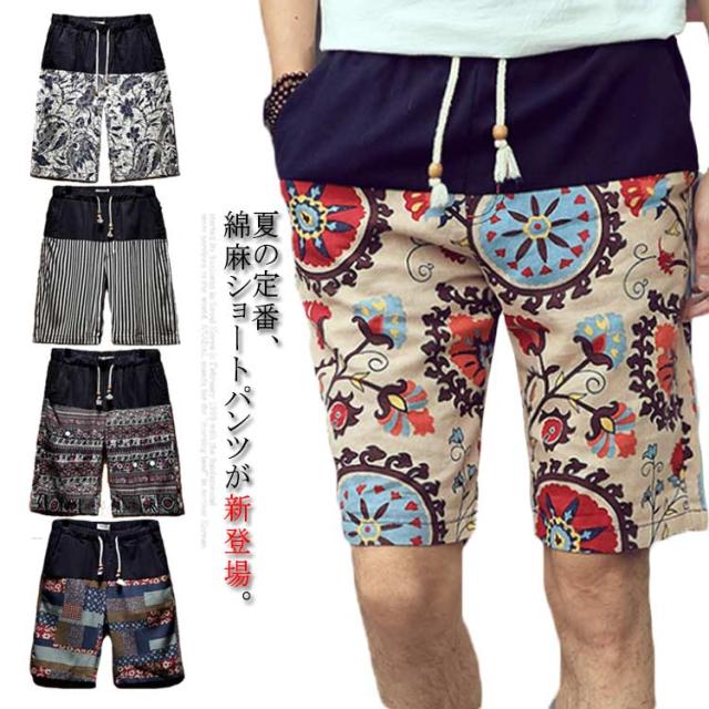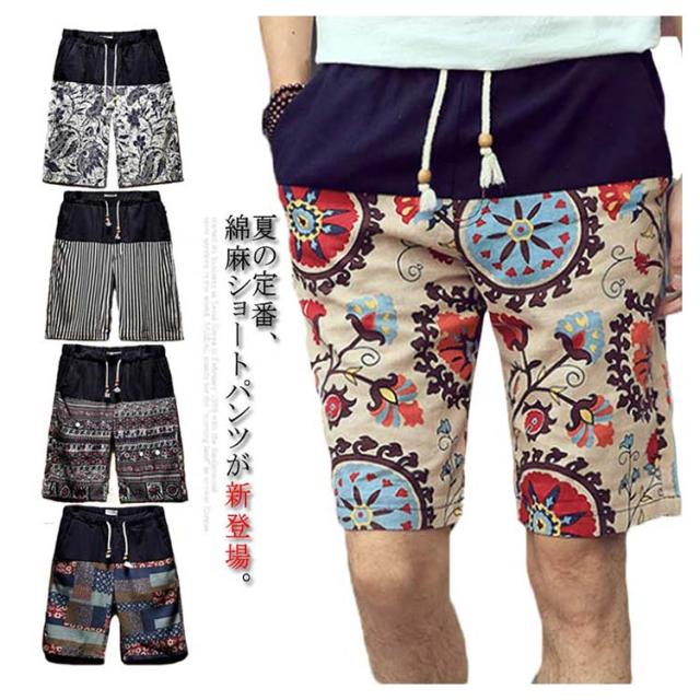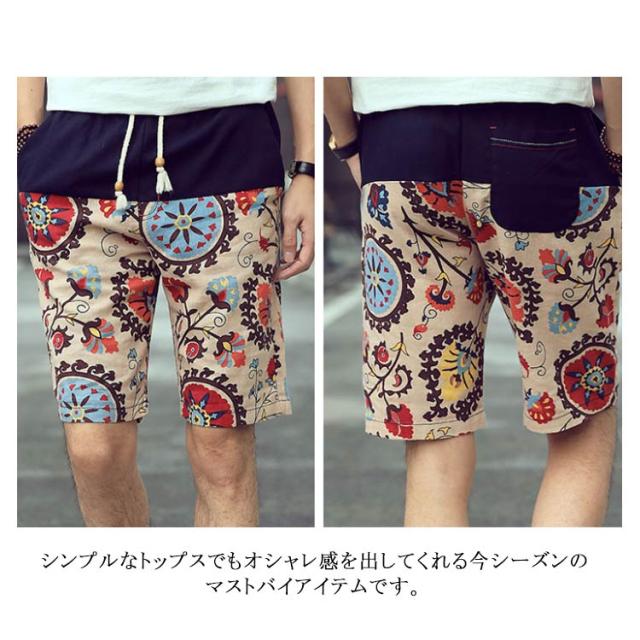 ハーフパンツ 綿麻パンツ リネンパンツ ショートパンツ メンズ 送料無料 花柄 膝丈 サーフ系 短パン 半ズボン ショーパン ショーツ オシャレ 通気性 春夏 リゾート ビーチ 旅行