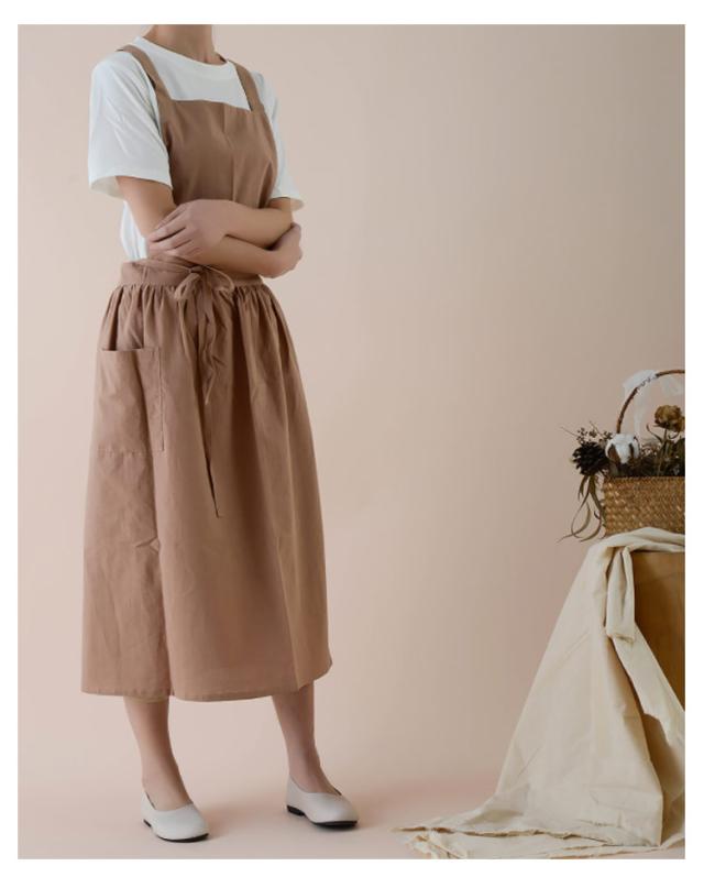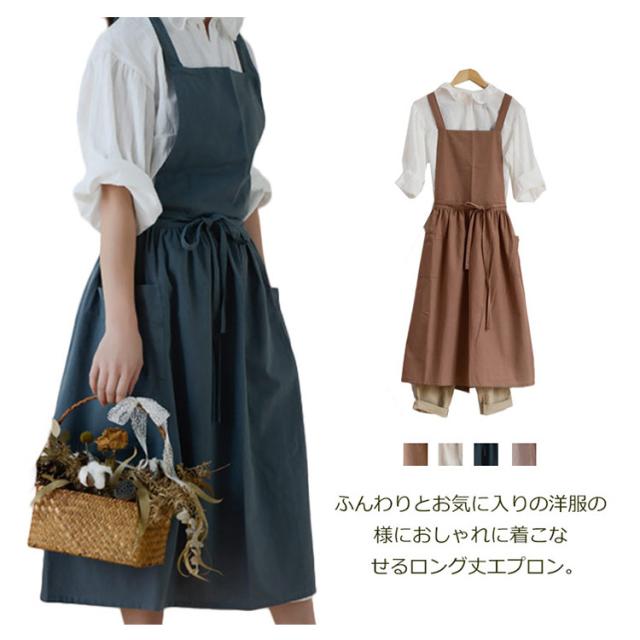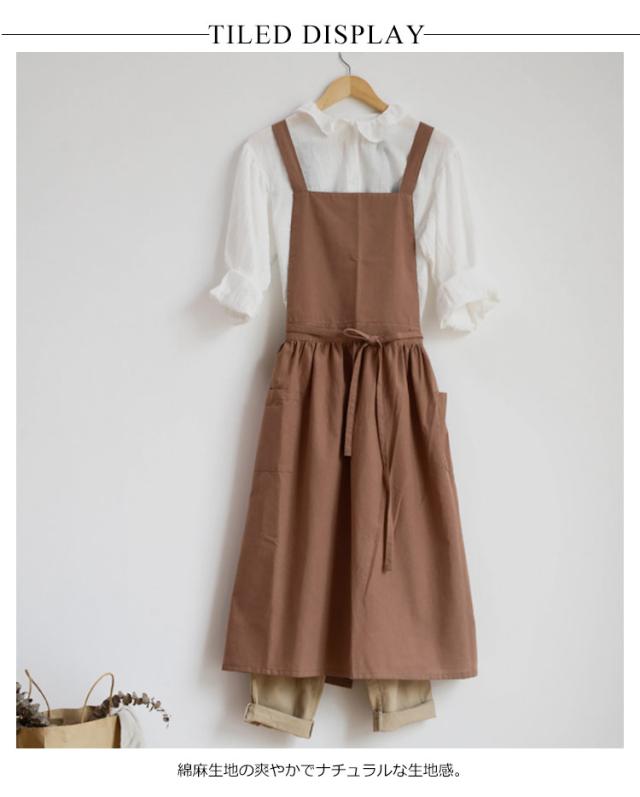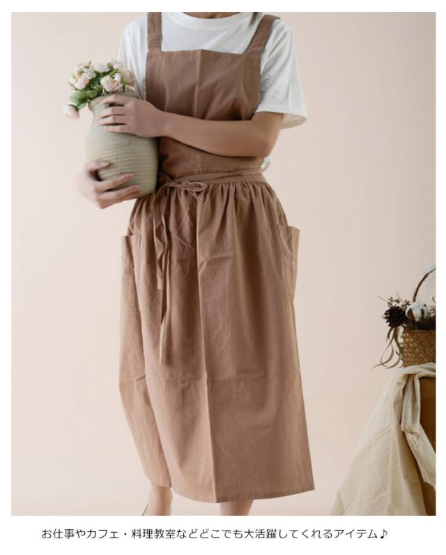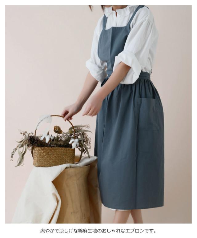 送料無料 エプロン 綿麻 リネン ナチュラル ワンピース おしゃれ コットンリネン 楽ちん 着脱かんたん ロング 背付き かわいい キッチン 家事 カフェ 保育士 料理人 スーパー用 花屋 介護士 母の日 プレゼント ギフト 贈り物