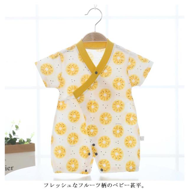 | フレッシュなフルーツ柄のベビー甚平。 柔らかい素材でベビー肌に優しく、着心地も快適。 室内コーデはもちろん、お出かけコーデにもオジャレが楽しめます。 | |