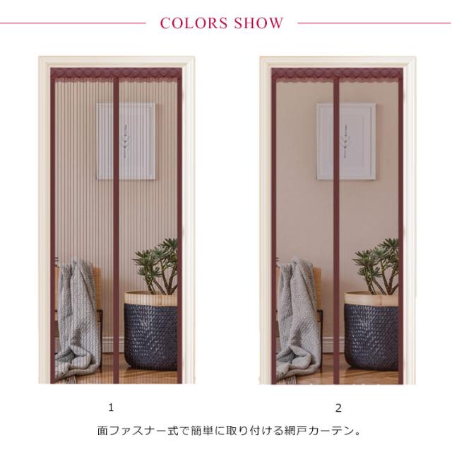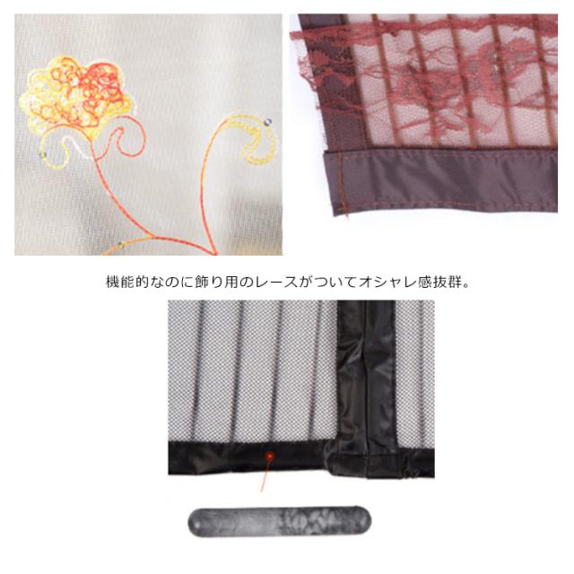 | 面ファスナー式で簡単に取り付ける網戸カーテン。 蚊除け、ホコリ防止、害虫対策や風を通すことにバツグン! 取付も簡単でマジックテープも吸着力がありすぐに閉まって便利です。 機能的なのに飾り用のレースがついてオシャレ感抜群。 夏場も玄関から風が入りとても涼しく過ごせます。 | |