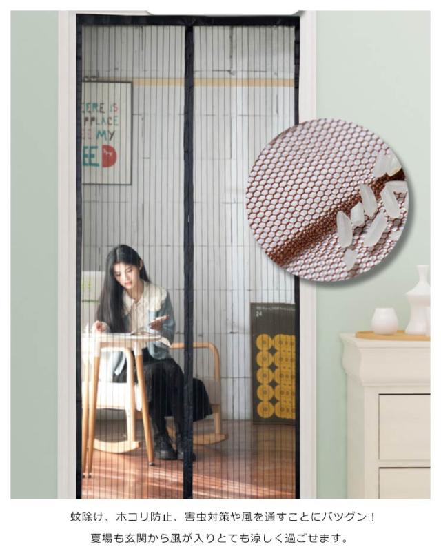 【送料無料】網戸 玄関 蚊帳カーテン マグネット開閉式 虫よけ 網戸カーテン 玄関用網戸 メッシュ ロングサイズ 磁石 風通し 換気対策 工事不要 取り付け簡単 間仕切り 断熱 保温 暑さ対策 100*220cm 90*210cm