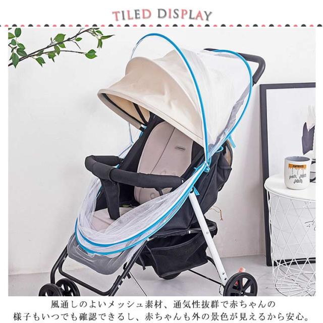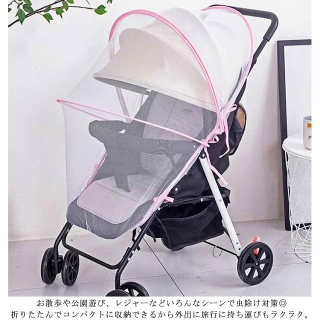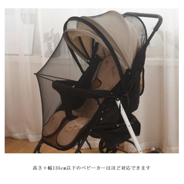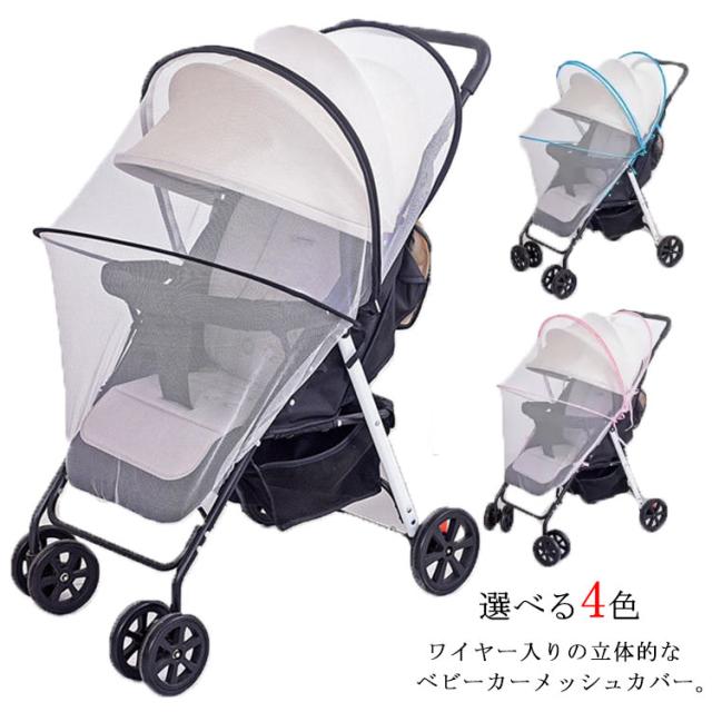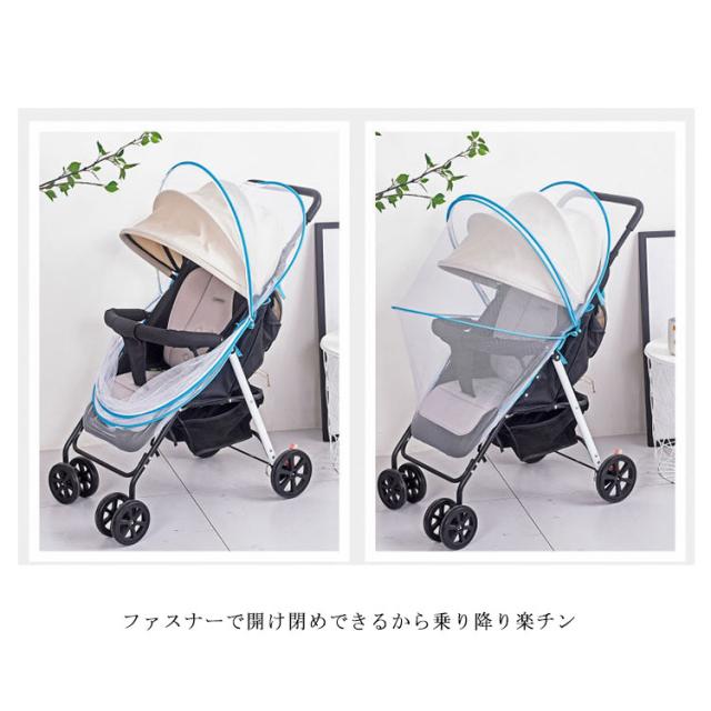 360度 虫除け ベビーカーカバー ベビーカー用蚊帳 メッシュカバー 蚊よけ ファスナー付き 乗り降りラクラク ワイヤー入り 立体 防虫ネット 通気性 汎用