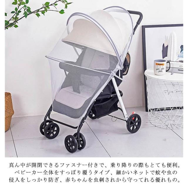 | ワイヤー入りの立体的なベビーカーメッシュカバー。 真ん中が開閉できるファスナー付きで、乗り降りの際もとても便利。 ベビーカー全体をすっぽり覆うタイプ、細かいネットで蚊や虫の侵入をしっかり防ぎ、赤ちゃんを虫刺されから守ってれる優れもの。 風通しのよいメッシュ素材、通気性抜群で赤ちゃんの様子もいつでも確認できるし、赤ちゃんも外の景色が見えるから安心。 お散歩や公園遊び、レジャーなどいろんなシーンで虫除け対策◎ 折りたたんでコンパクトに収納できるから外出に旅行に持ち運びもラクラク。 | |