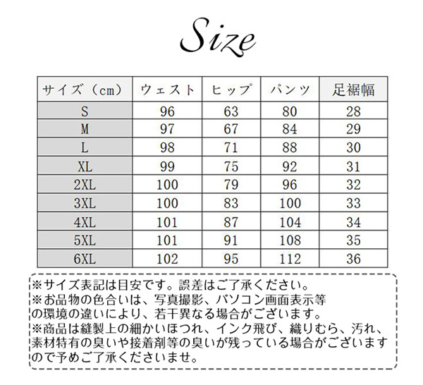 | サイズ | S M L XL 2XL 3XL 4XL 5XL 6XL |