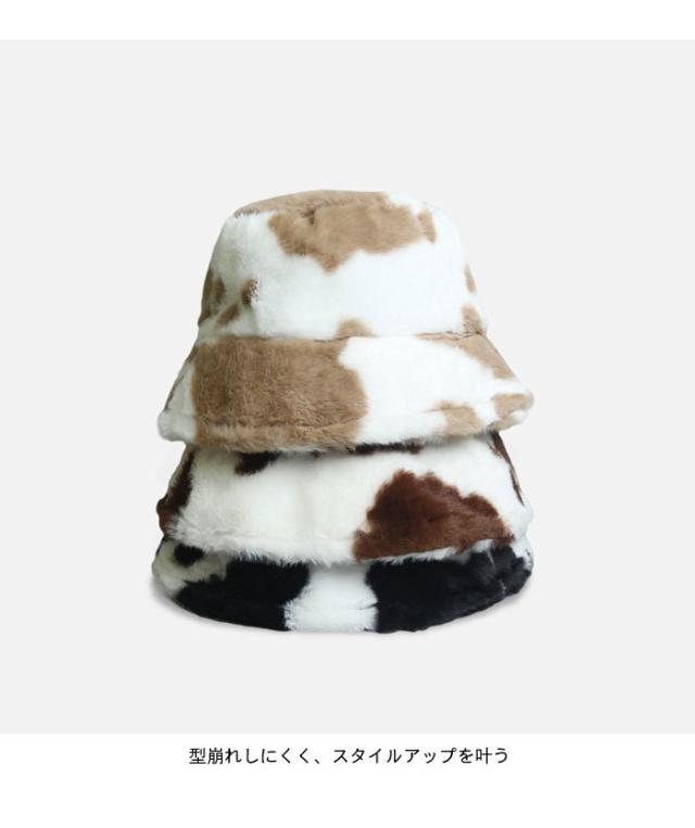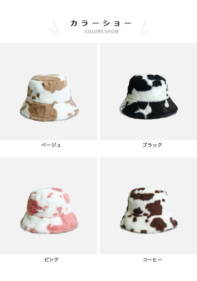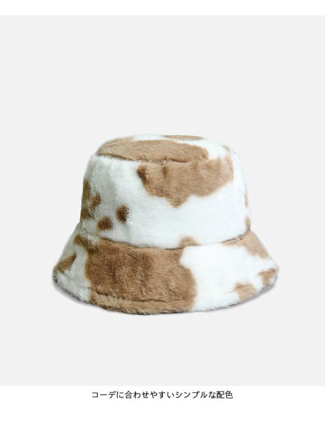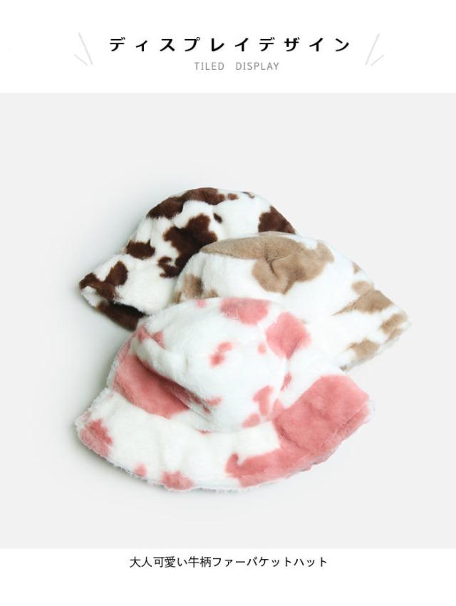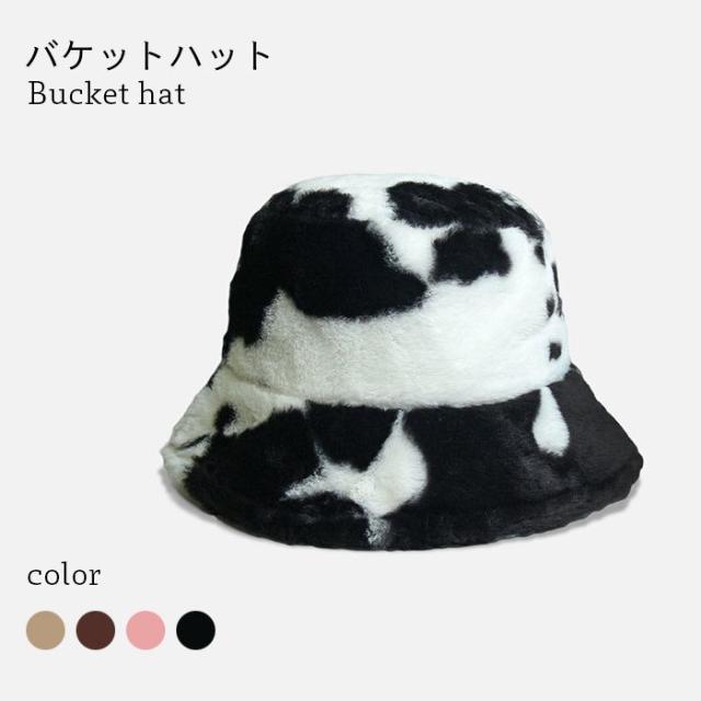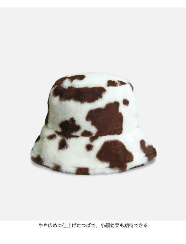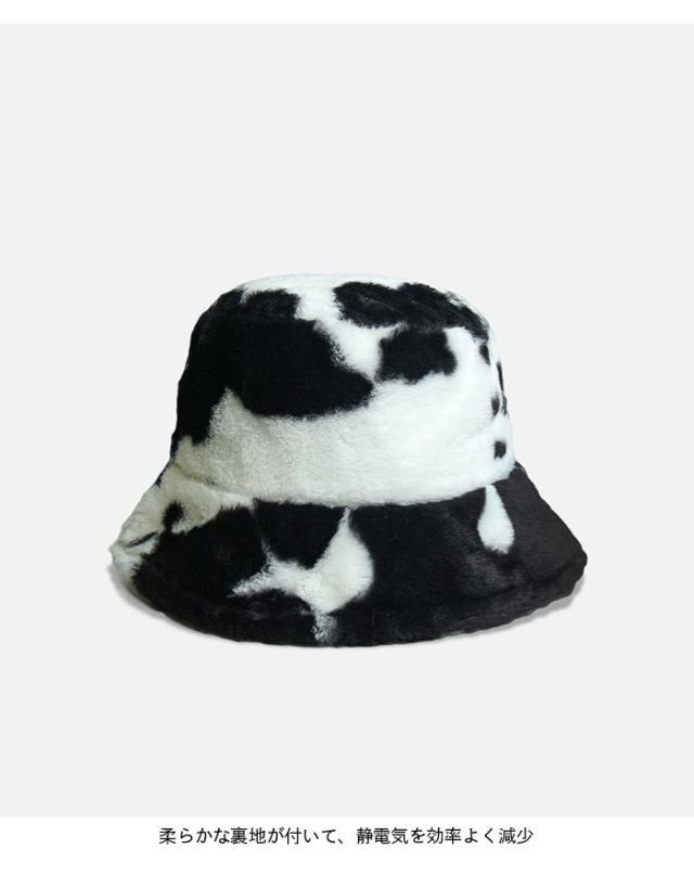 【送料無料】バケットハット レディース ファーハット 帽子 ファーバケットハット フェイクファー 牛柄 もこもこ お洒落 カジュアル 大人可愛い