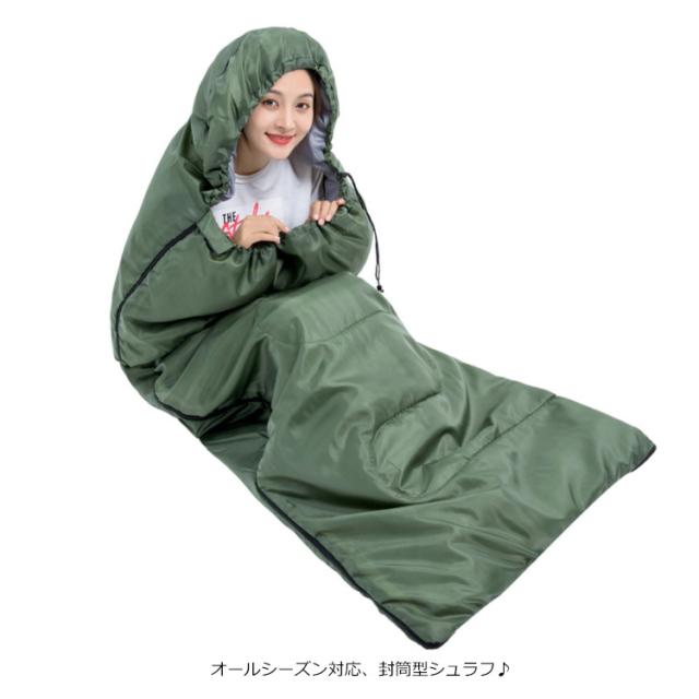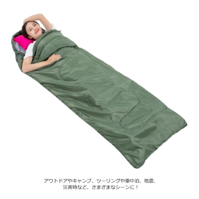寝袋 封筒型 シュラフ 車中泊 登山 キャンプ アウトドア ふんわり ふかふか 掛け布団 コンパクト 収納 袋付き 持ち運び 地震 災害対策 防災グッズ 帽子付き 通気性 軽量 防寒 保温 オールシーズン