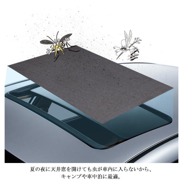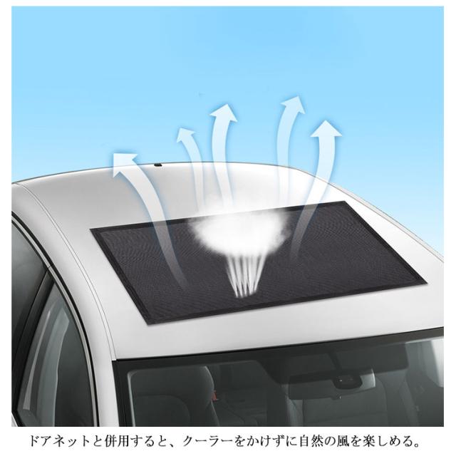 | 風通しよく虫除け・日よけに優れ車ルーフ窓メッシュネット。 マグネットでピッタと取り付け簡単。 夏の夜に天井窓を開けても虫が車内に入らないから、キャンプや車中泊に最適。 ドアネットと併用すると、クーラーをかけずに自然の風を楽しめる。 車内泊としても、夏の星空が楽しめるが憧れの車生活◎ | |