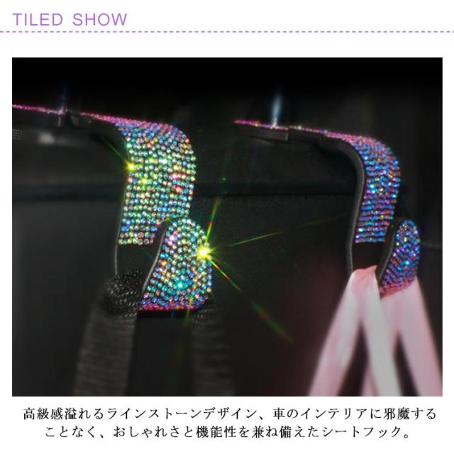 車用 フック ヘッドレストフック キラキラ 2個セット ラインストーン付き 荷物掛け 車収納 シートフック カーアクセサリー 傘掛け 車用品