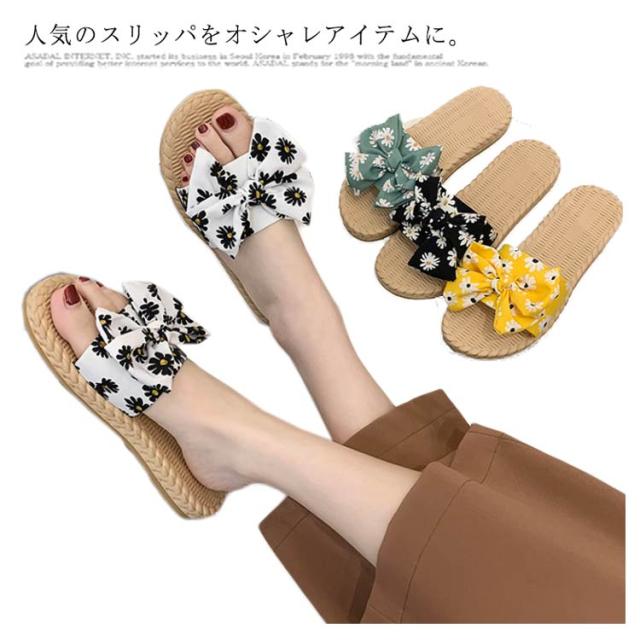 フラットサンダル リボンサンダル ぺたんこ ローヒール 美脚靴 ビーチサンダル レディース リボン ぺたんこ スリッパ 夏 歩きやすい