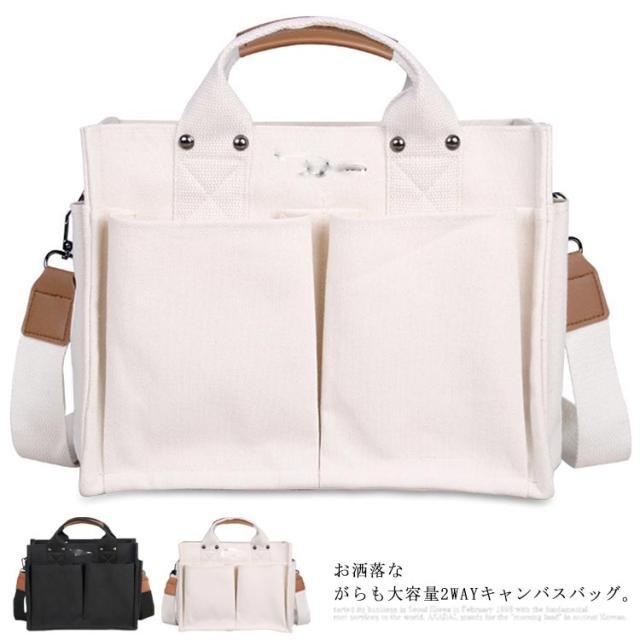 送料無料 トートバッグ 2WAY ショルダー 斜めがけバッグ バック レディース キャンバスバッグ キャンバス 帆布 軽量 かわいい キャンバスショルダー マザーズバッグ 肩掛け シンプル 無地 大人 通勤 通学 旅行 買い物 男女兼用 プレゼント
