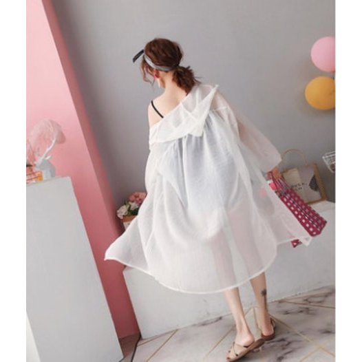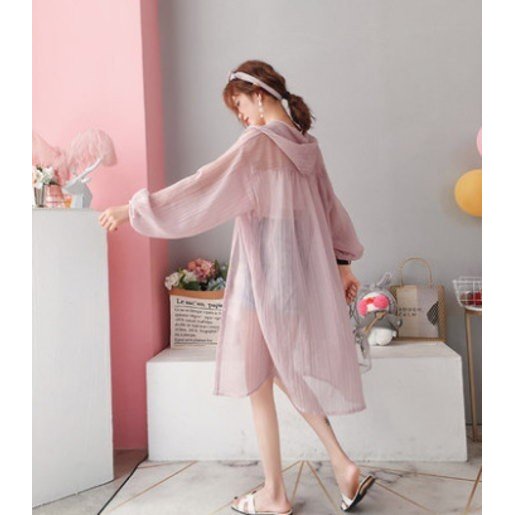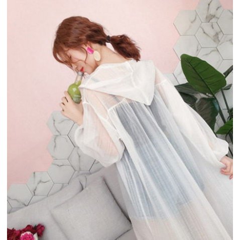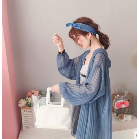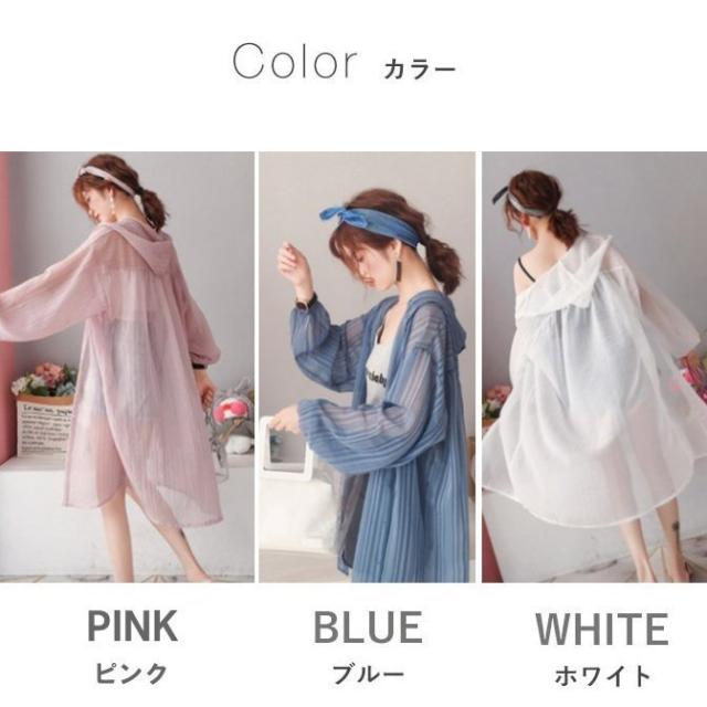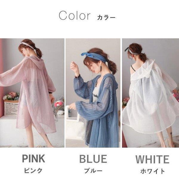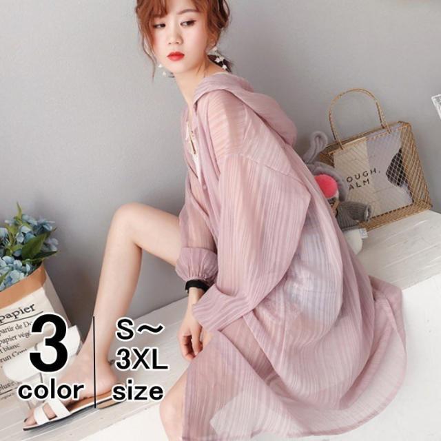 カーディガン レディース シャツ シースルー オーバーサイズ 長袖 フード付き ロング丈 ストライプ 羽織り