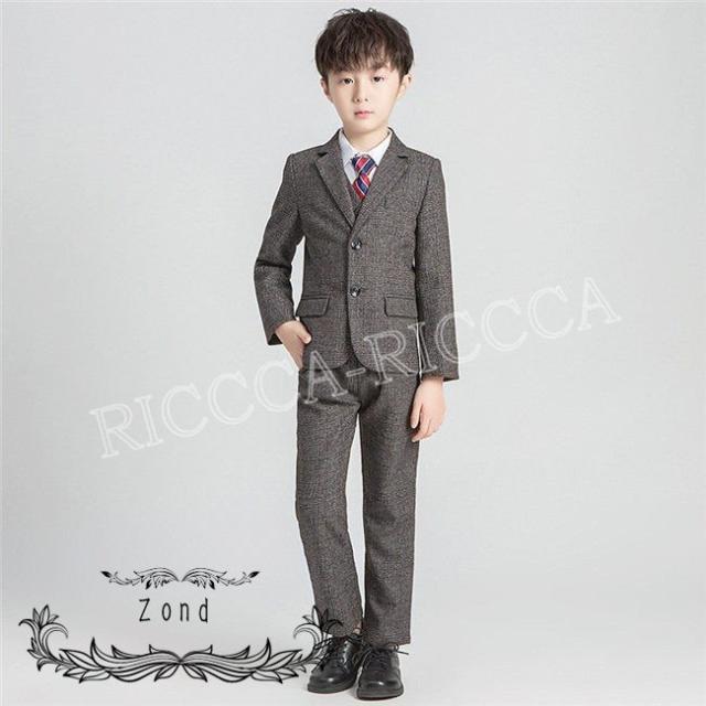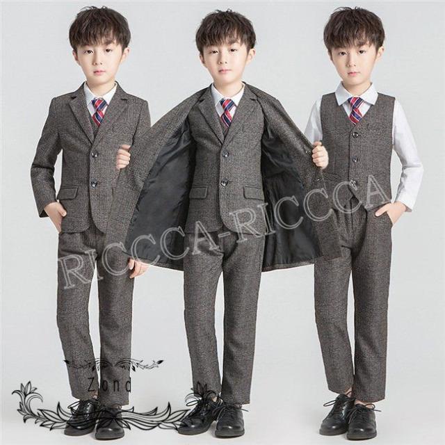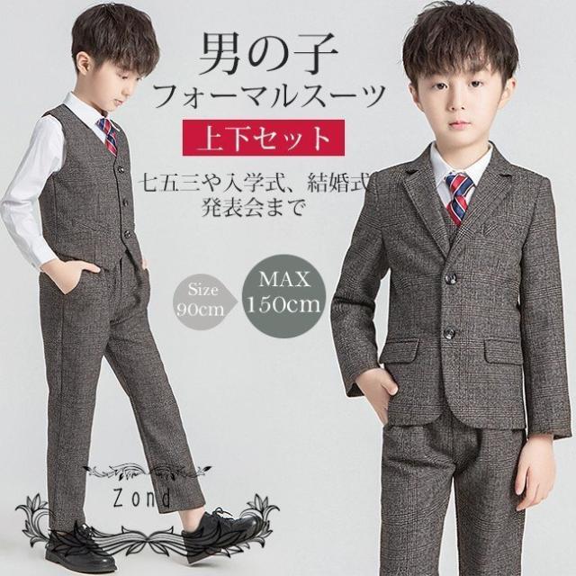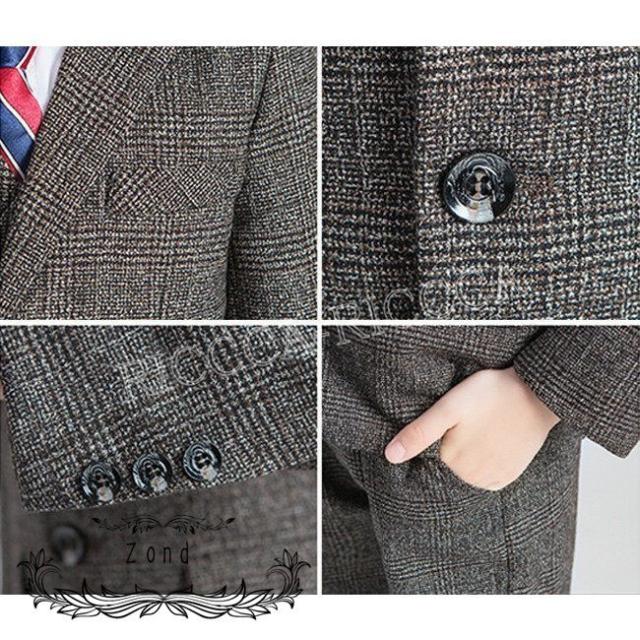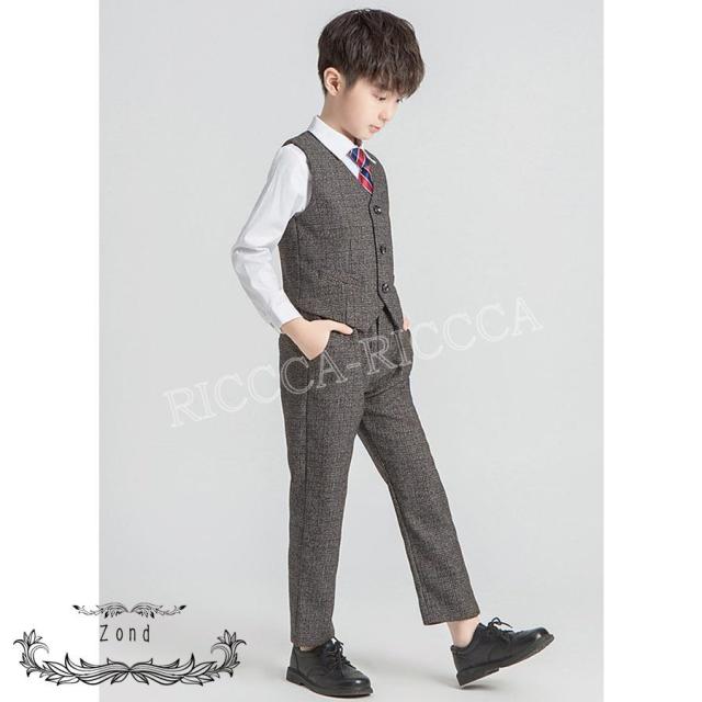 キッズ フォーマルスーツ 男の子 グレンチェック テーラードジャケット ベスト ズボン セットアップ おしゃれ チェック柄 4点セット子供服 紳士服 入園式 卒園式