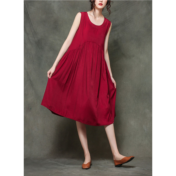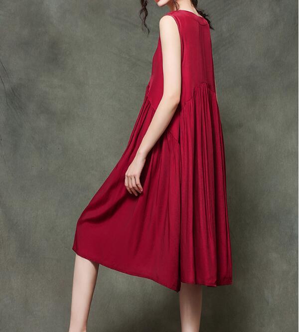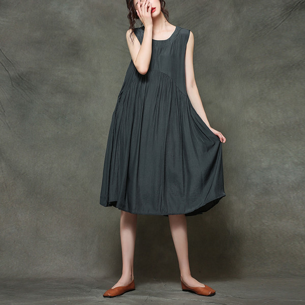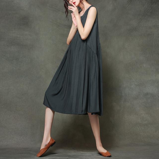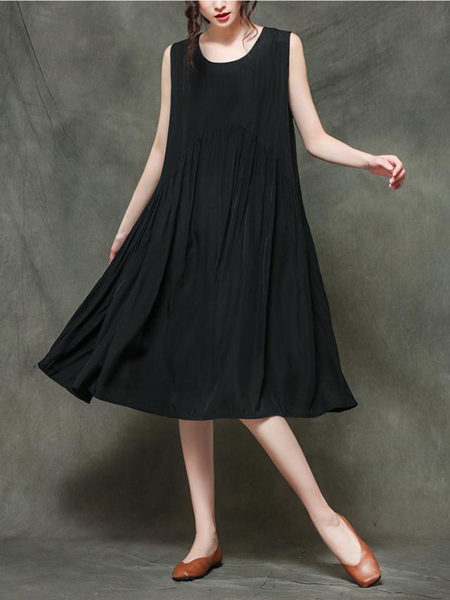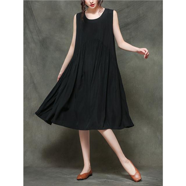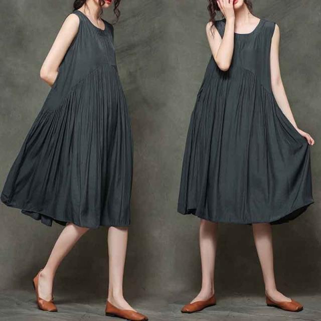 ワンピース レディース 森ガール フレアワンピース ゆったり ノースリーブ 膝下丈 体型カバー 夏新作