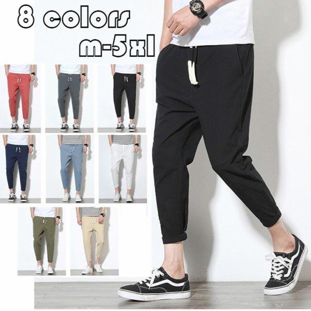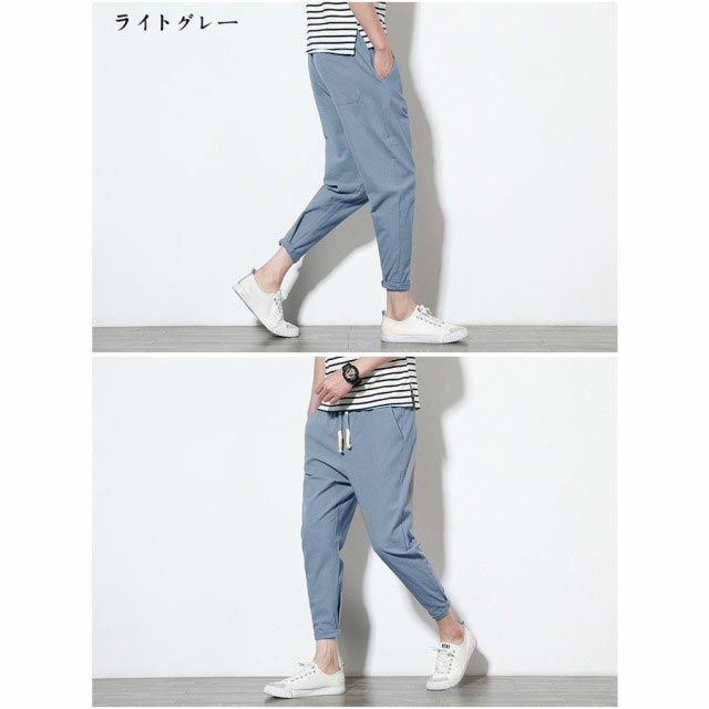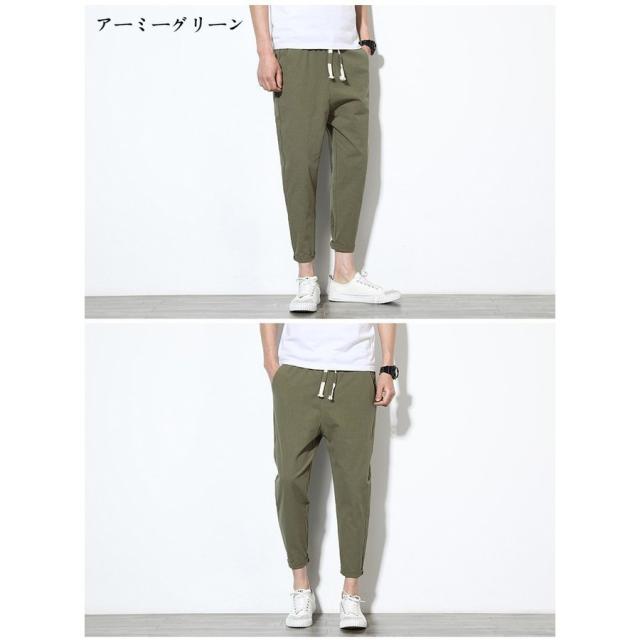ジョガーパンツ 綿麻 サルエルパンツ メンズ チノパンツ テーパードパンツ カジュアル ズボン ボトムス ゆったり 夏 秋 彼氏 2019 新作 夏 8色