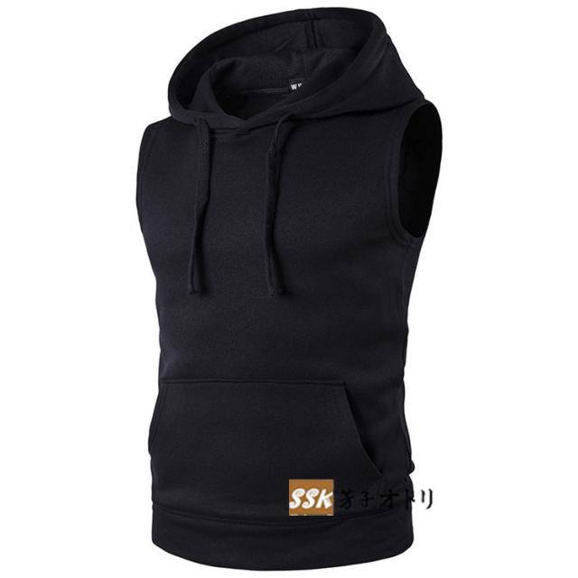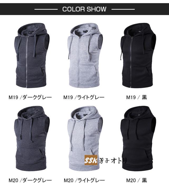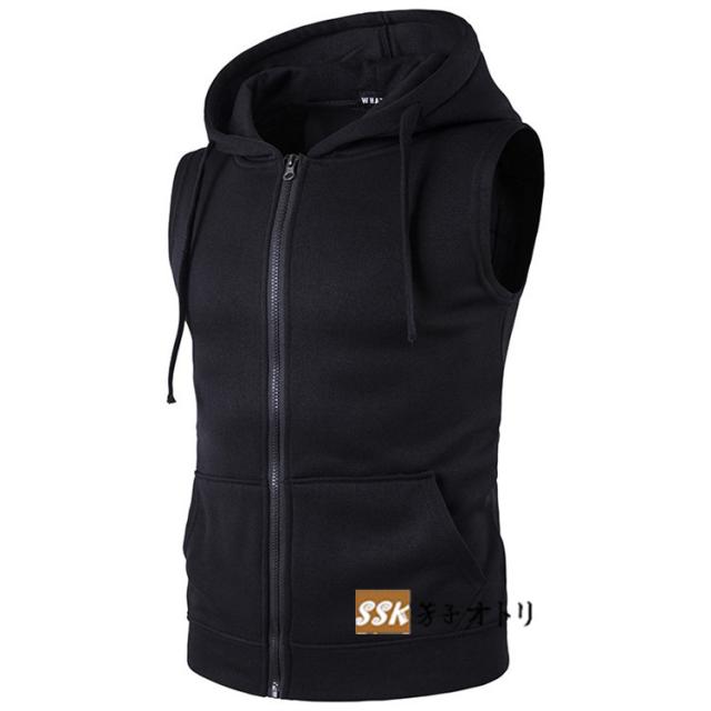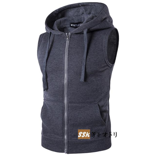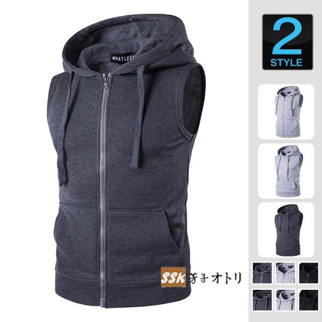 パーカー メンズ ジップアップパーカー プルオーバー 2タイプ ノースリーブ 無地 袖なしパーカー 夏パーカー 夏服