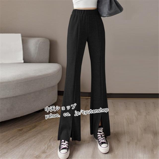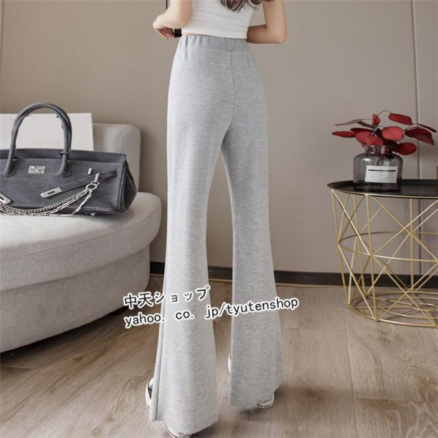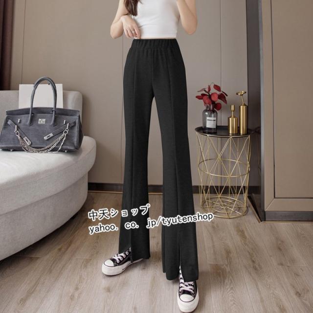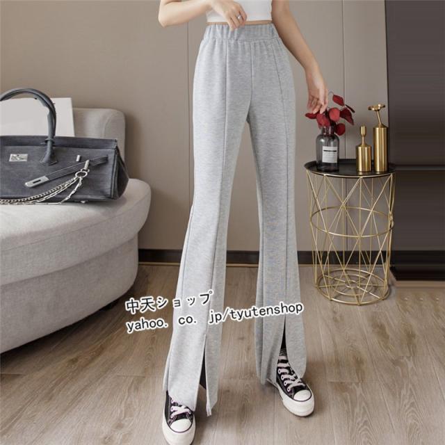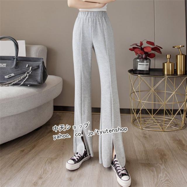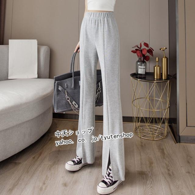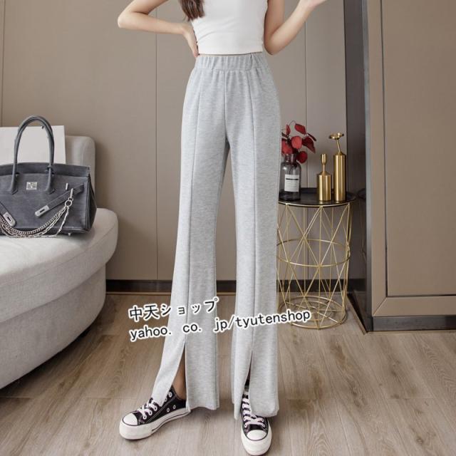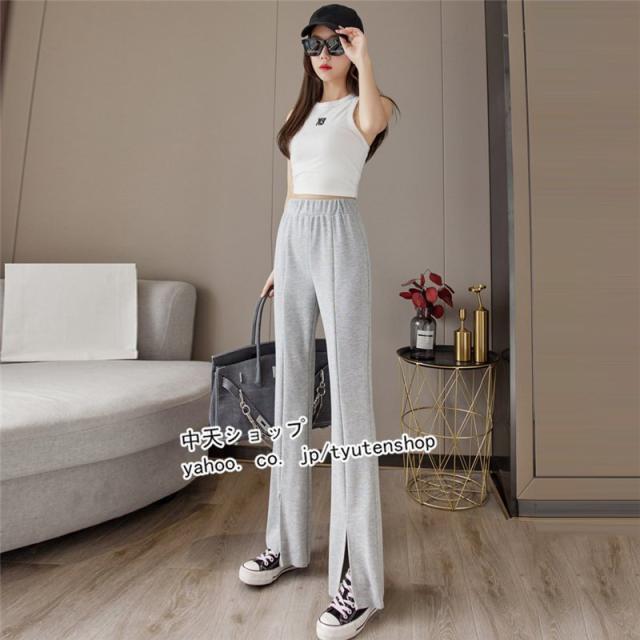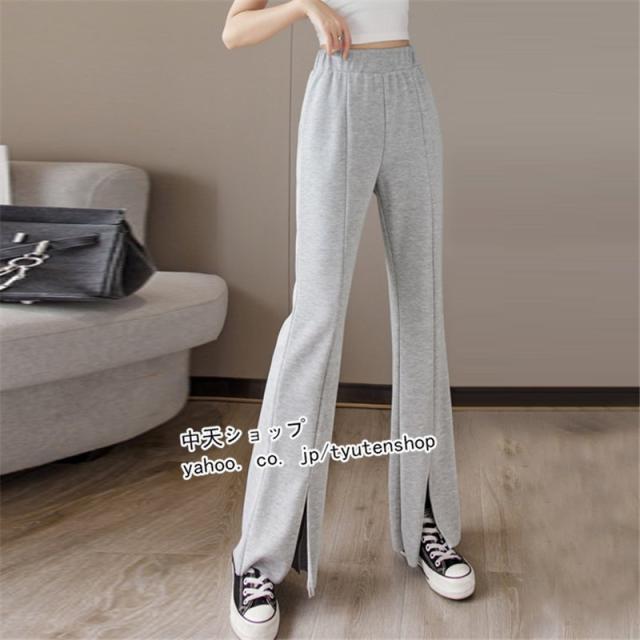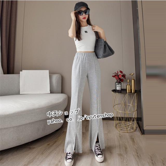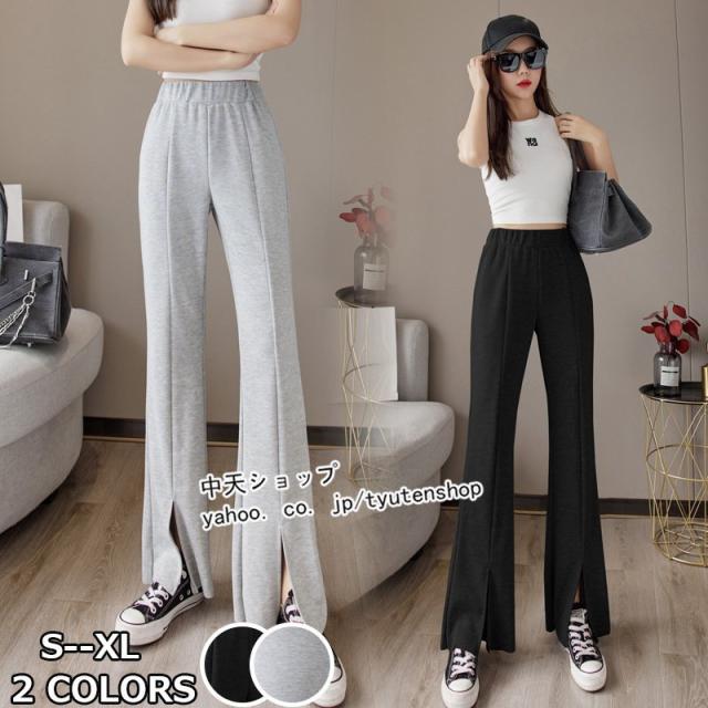 パンツ レディース ゆったり 春夏秋 スリット ウエストゴム ロング丈パンツ スポーツ ハイウエスト ラッパズボン ボトムズ 着痩せ 垂れ感 カジュアル 送料無料