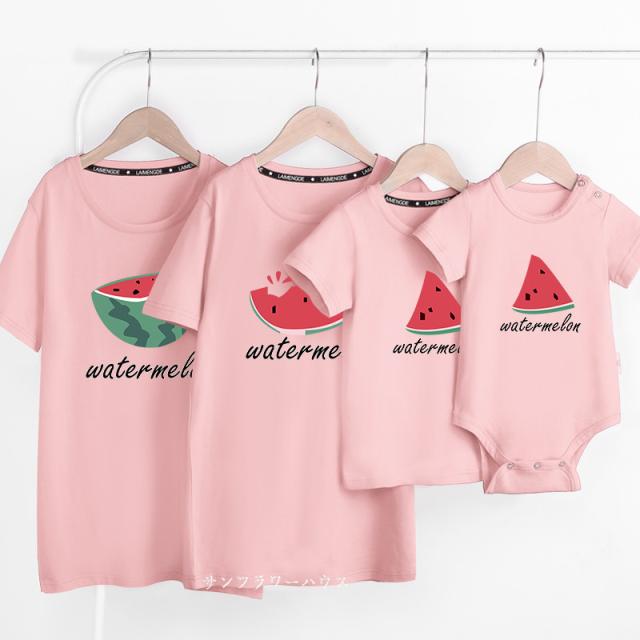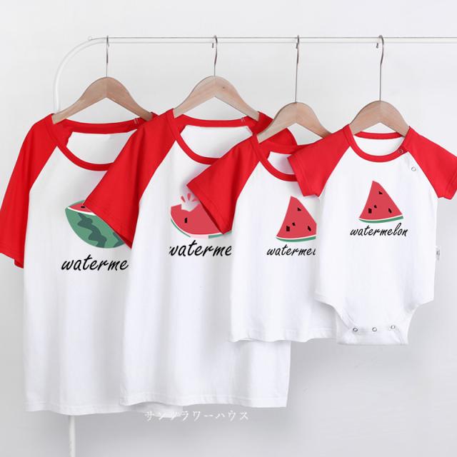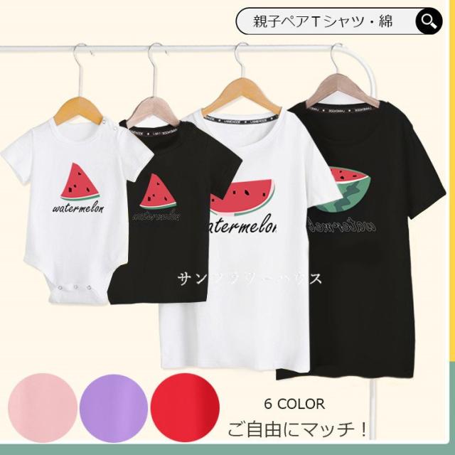 親子ペアルック 親子コーデ リンクコーデ 女の子 男の子 Tシャツ 親子服 スイカ プリント クマ 半袖Tシャツ ペアtシャツ 誕生日 父の日 ギフト プレゼント