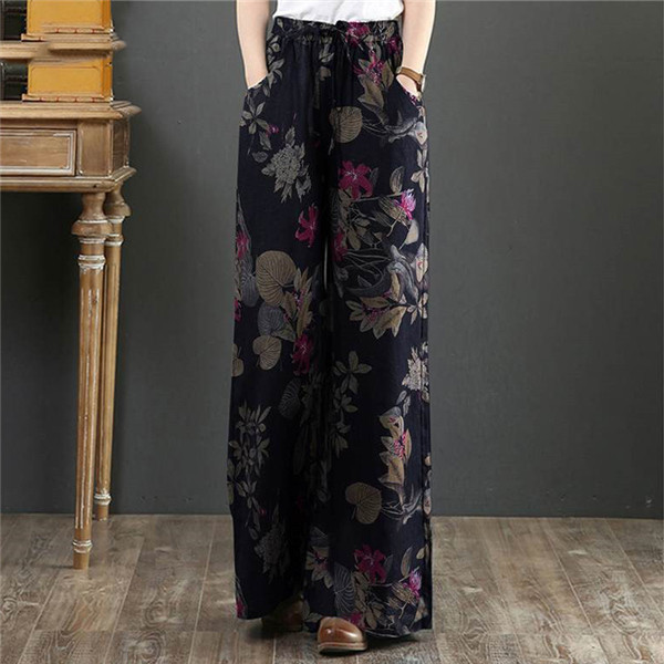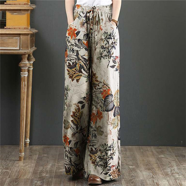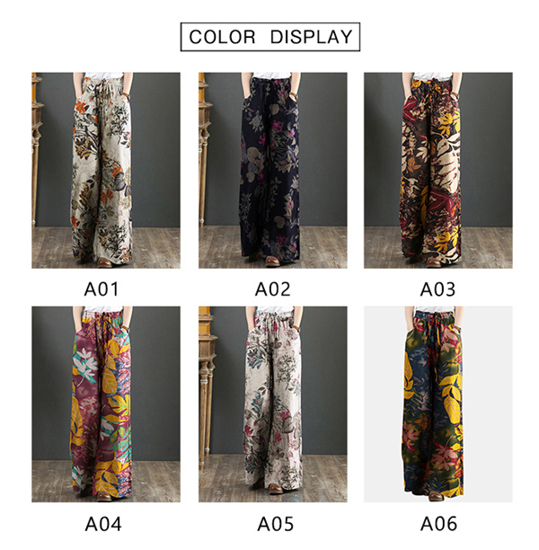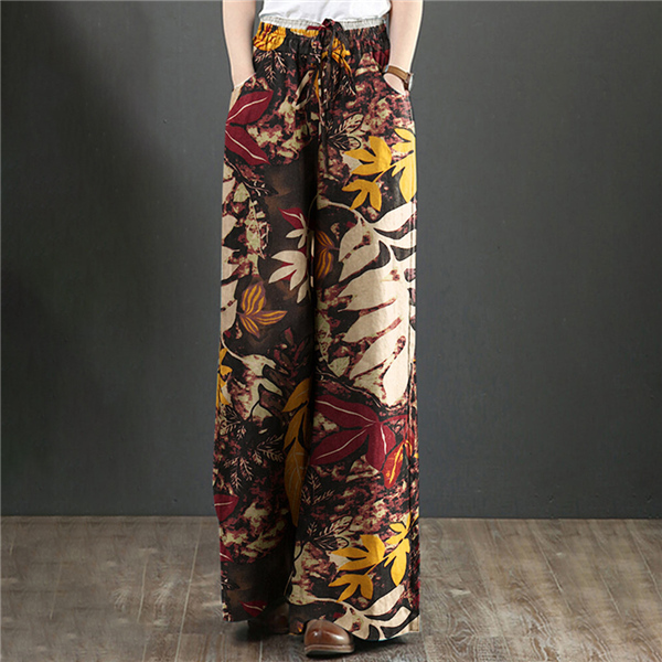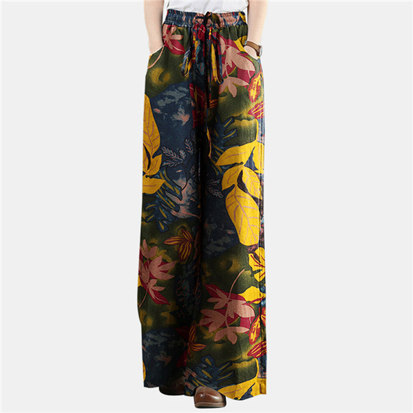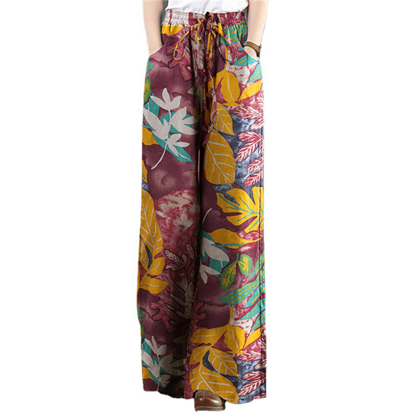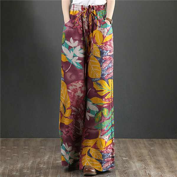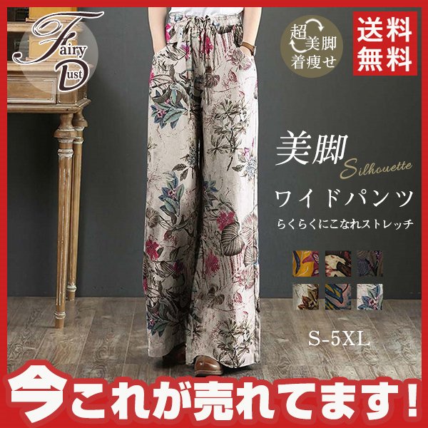 ワイドパンツ レディース 春 夏 ロング丈 フレア パンツ 花柄 ウエストゴム ガウチョ 綿混 ボトムス カジュアル 涼しい ナチュラル 無地 送料無料