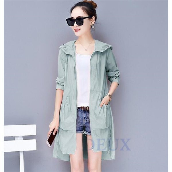 トレンチコートレディーススプリングコート薄手夏ロング丈UVカットライトアウターサマージャケットチェスター