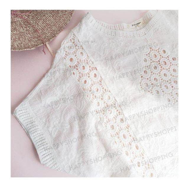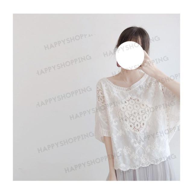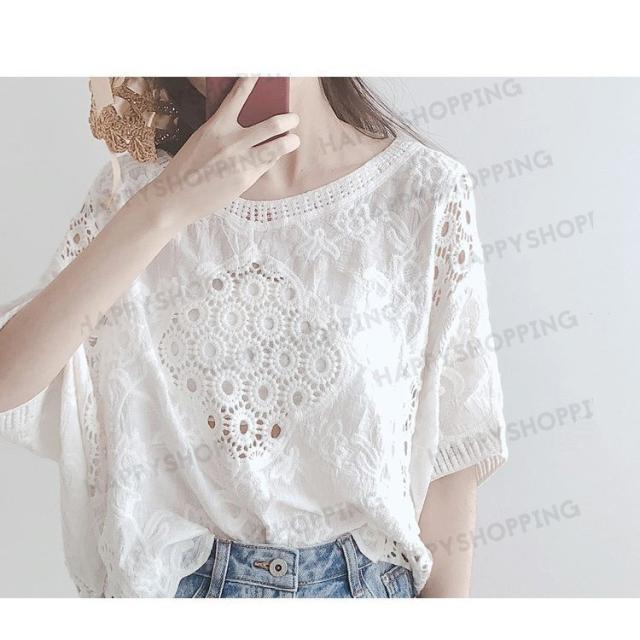 ブラウス レディース きれいめ 40代 春夏 上品 レース花刺繍ブラウス 白シャツ vネックトップス 五分袖 ゆったり オシャレ 韓国風 大人 Tシャツ30代 50代