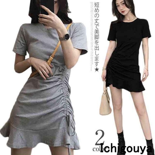 ワンピース チュニックワンピース ショート丈ワンピース 半袖ワンピース 肩出し リボン付き シンプル 無地 大人 上品 キレイめ 体型カバー 着痩せ
