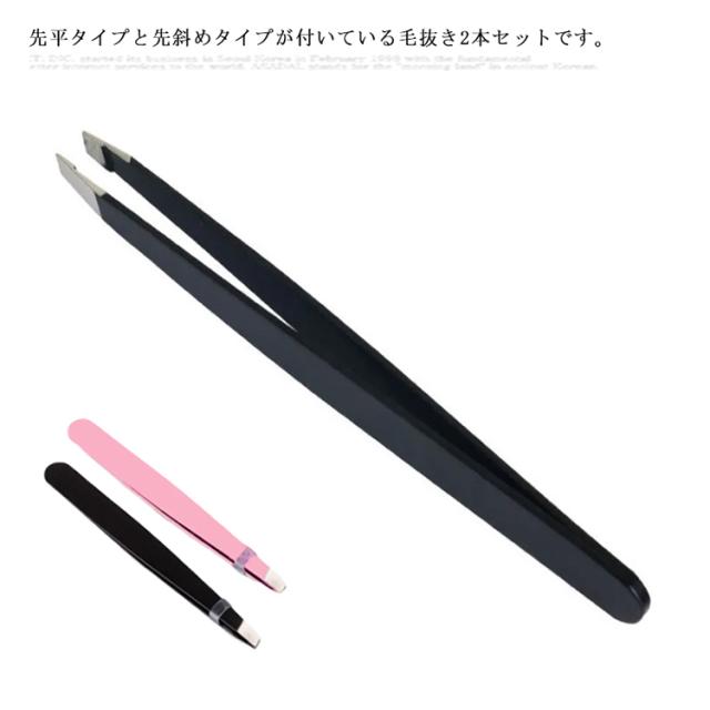 毛抜き 先斜め 先平 2本セット ツイザー 毛抜きセット 精密 精巧 眉毛 脱毛 角栓 うぶ毛 産毛 ヒゲ 髭 痛くない ステンレス製 お手入れ メイク道具 送料無料