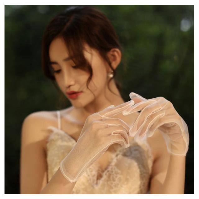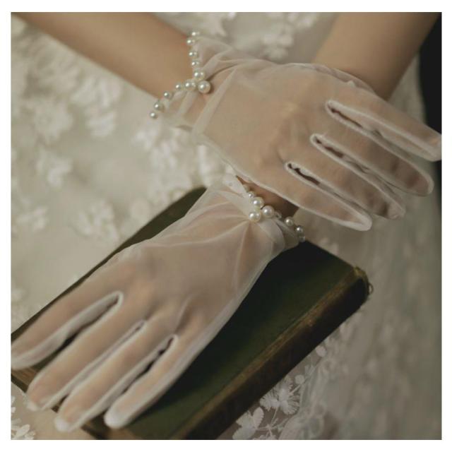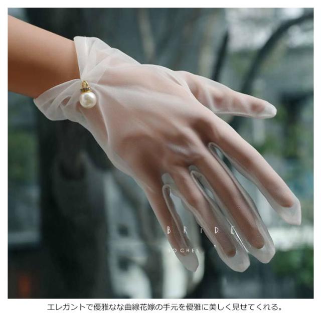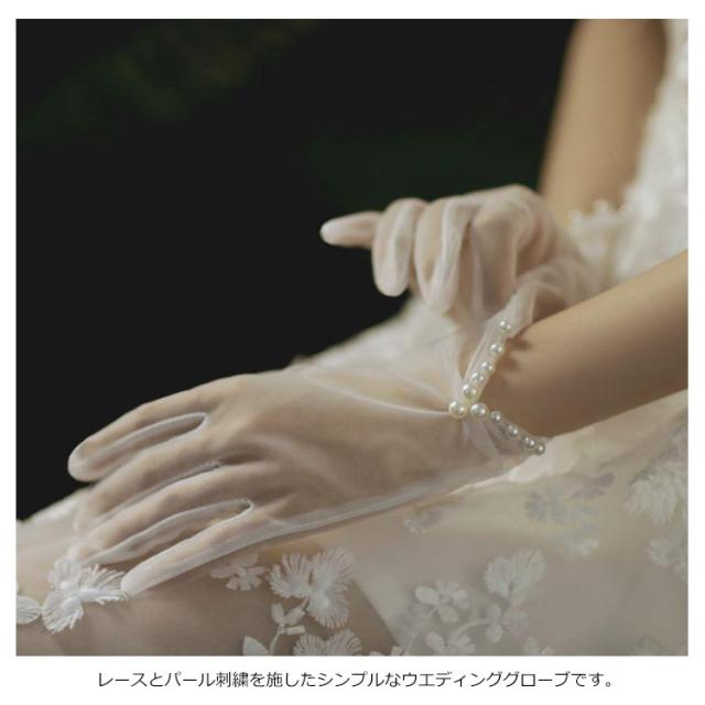ウエディンググローブ 手袋 オーガンジー ショート ロング レース リボン 刺繍 パール飾り 花嫁 結婚式 ウエディング ブライダル 前撮り パーティー 海外挙式 オフホワイト 小物 指なし