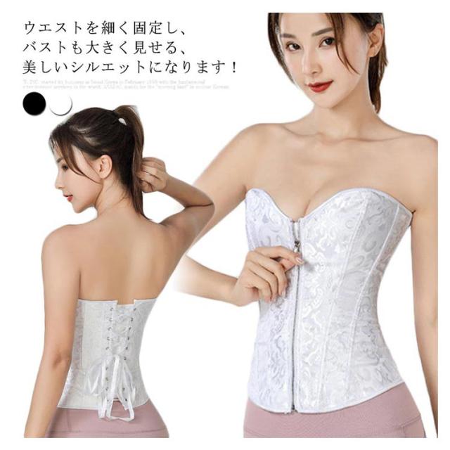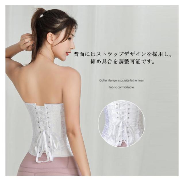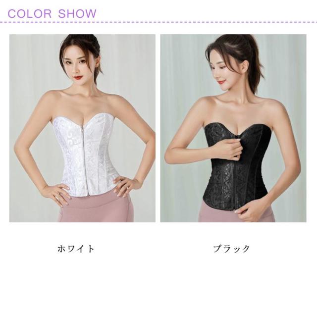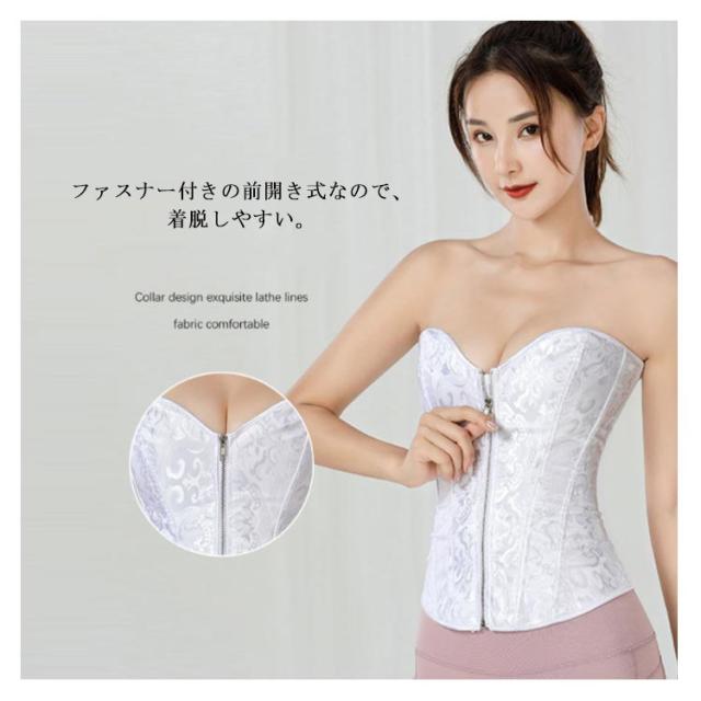 | ウエストを細く固定し、バストも大きく見せる、美しいシルエットになります! ボディを覆う形状となっており、カップも浅めに作られています。 伸縮性のある素材を使用し、体フィットし動きやすい着用感です。 ファスナー付きの前開き式なので、着脱しやすい。 背面にはストラップデザインを採用し、締め具合を調整可能です。 ブライダルインナーとしてぴったり!背中の開いたドレスでも安心です。 | |