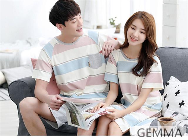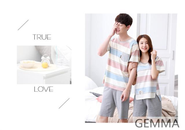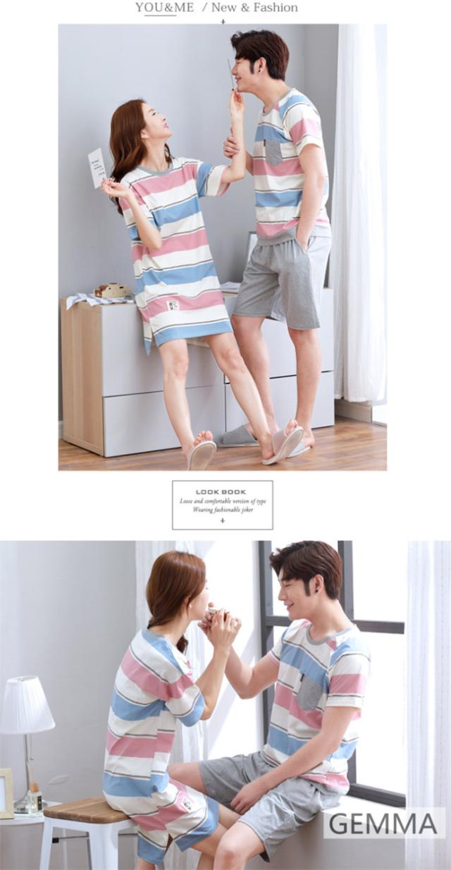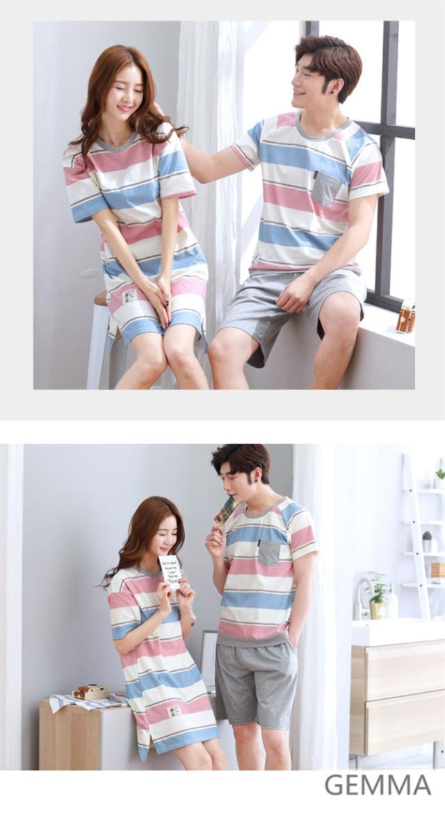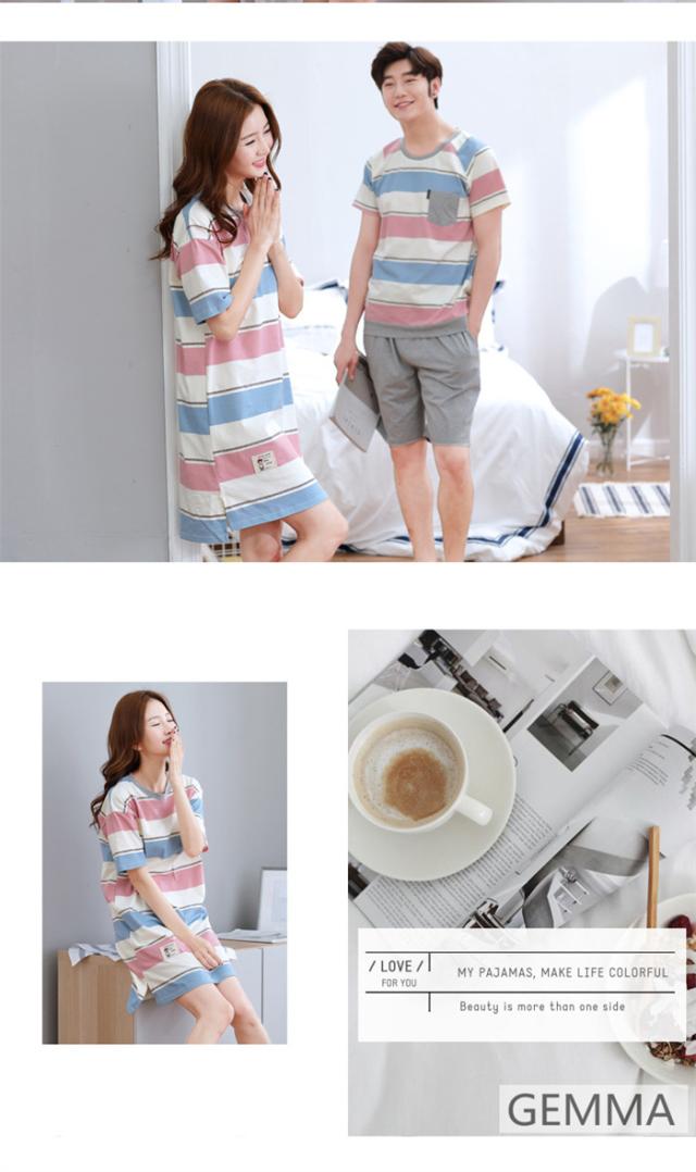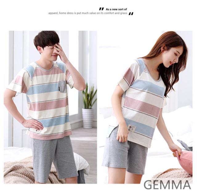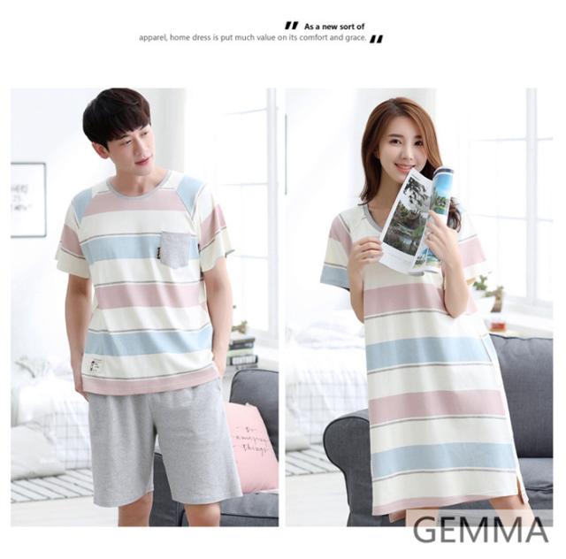 ルームウェア ペアパジャマ ワンピース 半袖 ナイトウェアtシャツ ストライブ ボーダー 夏 カップル お揃い コットン 部屋着 彼女 彼氏 夫婦 お祝い