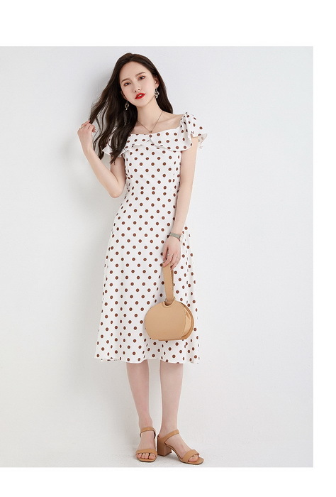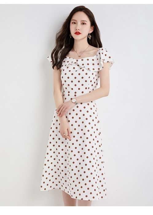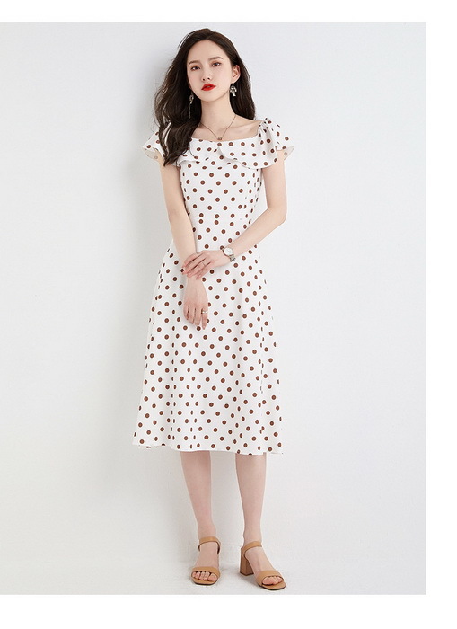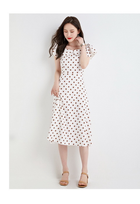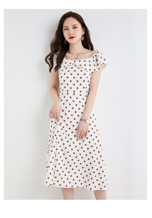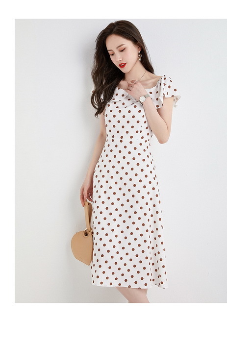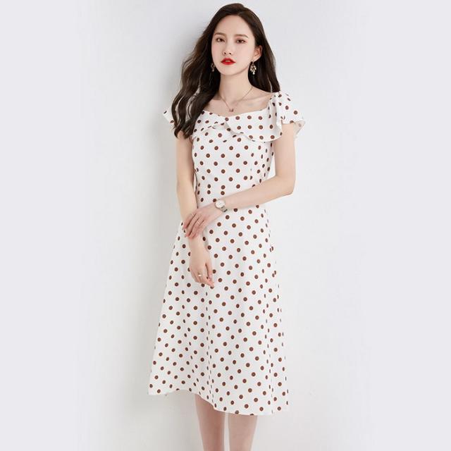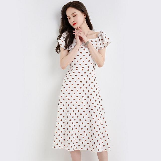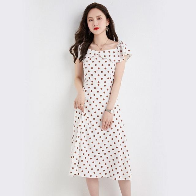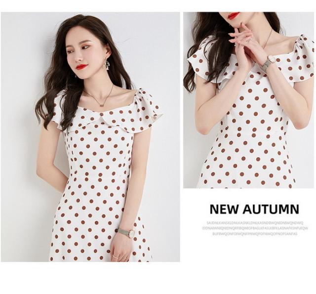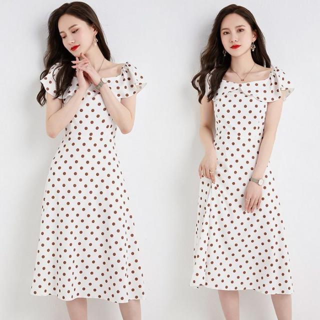 ワンピース レディース 40代 きれいめ 膝丈ワンピース 春夏新作 半袖ワンピース ドット柄ワンピース シフォン ひざ丈スカートAライン オシャレ 韓国風 30代