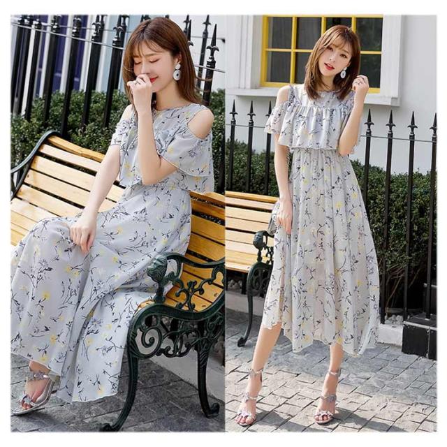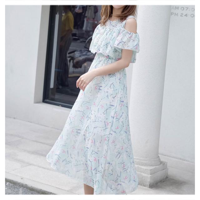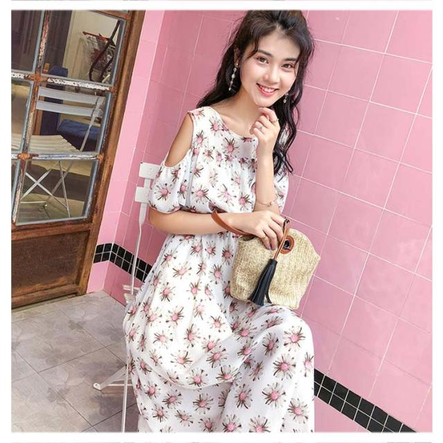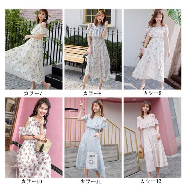 【送料無料】ワンピース 花柄 マキシワンピース レディース 無地 花柄 肩出し オフショルダー シフォン マキシワンピ 半袖 花柄ワンピ フレア ボヘミアン ビーチ ガールズ 着やせ リゾート パーティー 旅行 シフォンワンピース 大きいサイズ