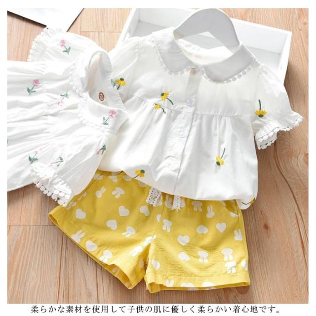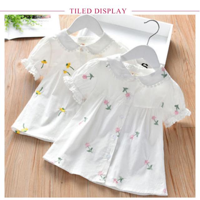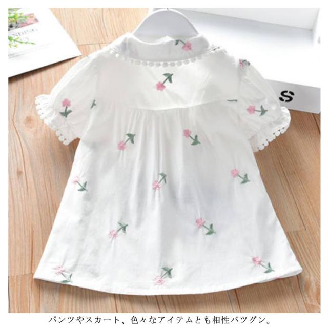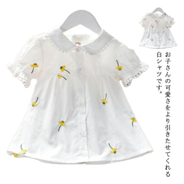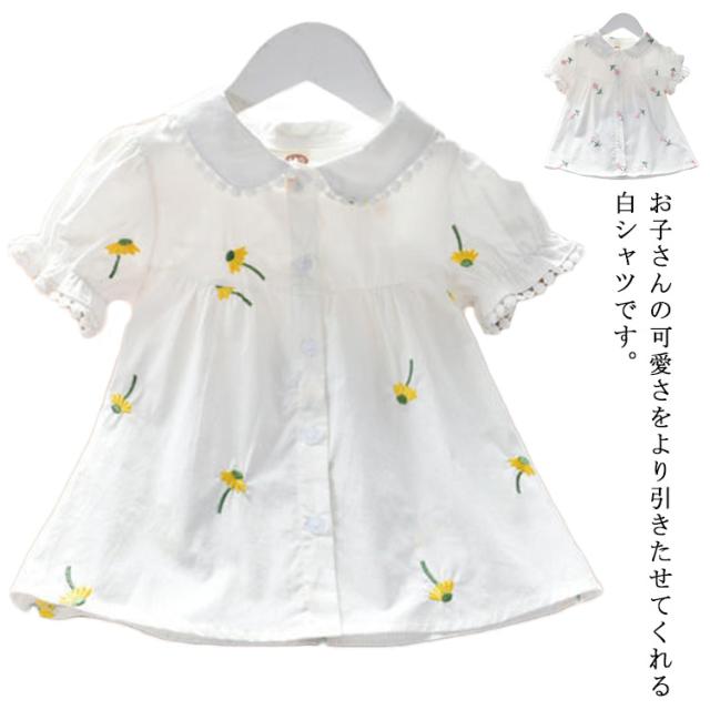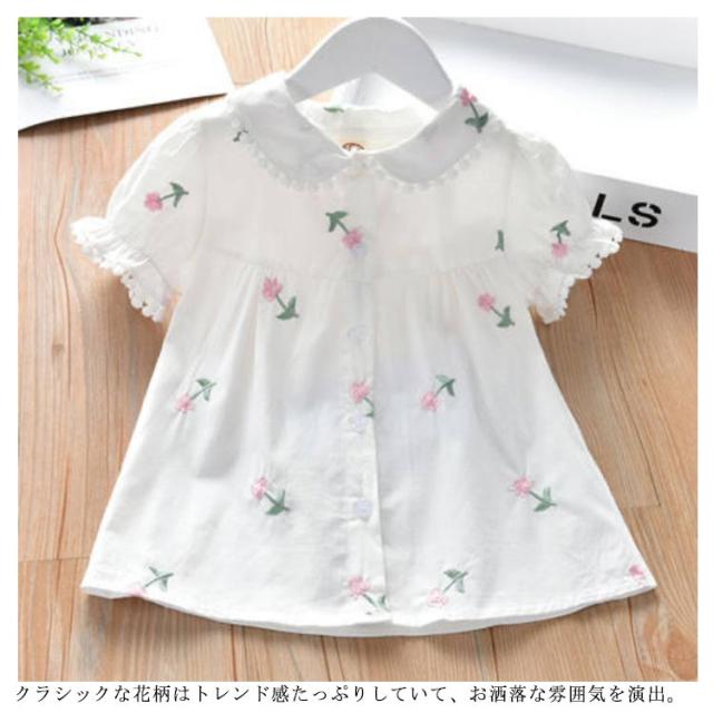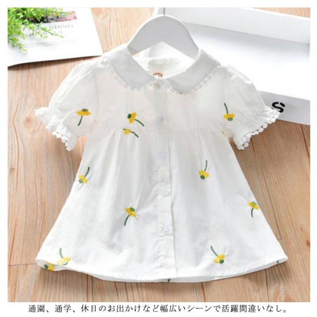 子供服 ブラウス 女の子 白シャツ 無地 可愛い 半袖シャツ トップス フォーマル 結婚式 発表会 キッズ 花柄 夏物 丸襟 カジュアル 通気性