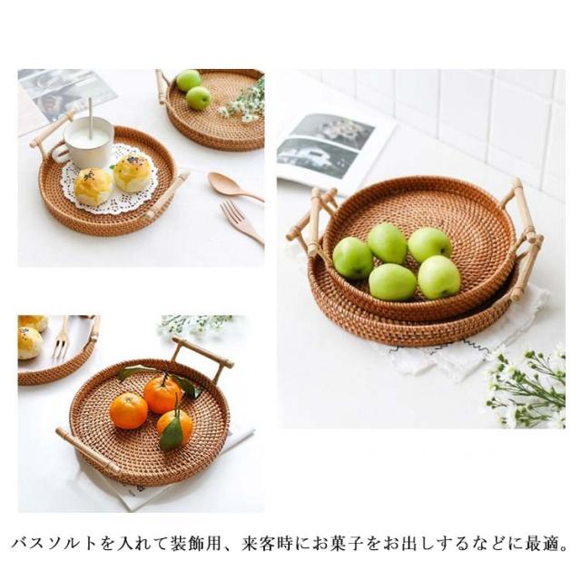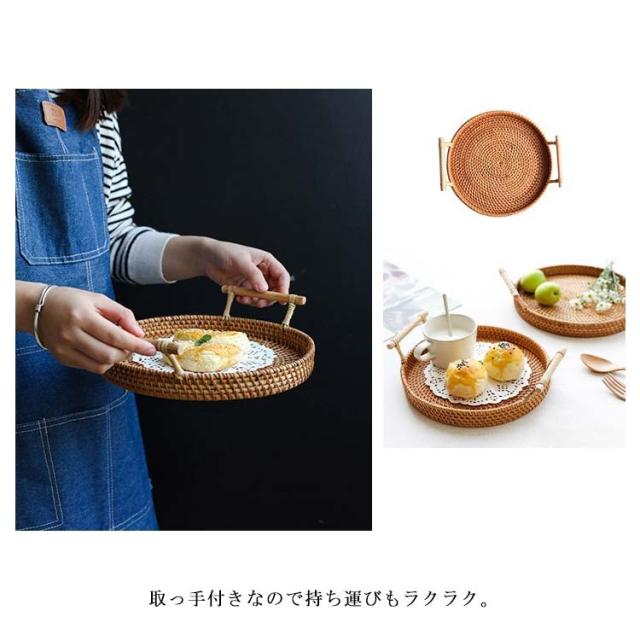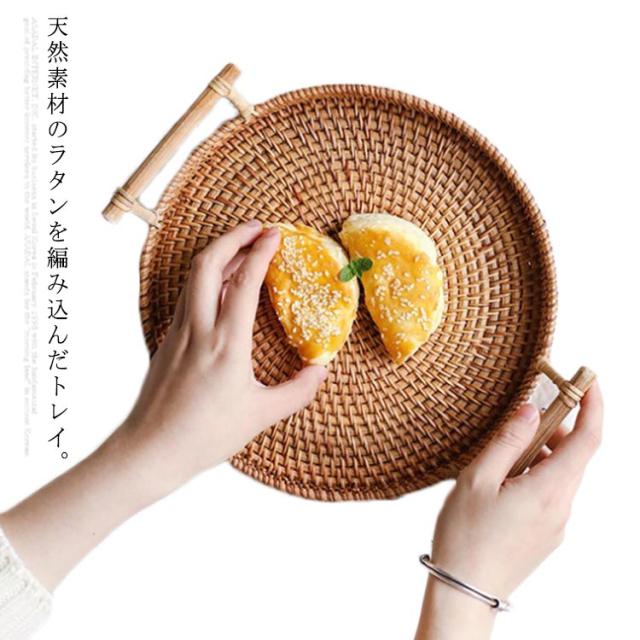 ラタントレイ トレー ラウンド 丸形 取っ手付き おしゃれ かわいい カフェトレイ インテリア バスケット バリ 雑貨 アジア雑貨 キッチン かご ナチュラル シンプル おしゃれ 新生活