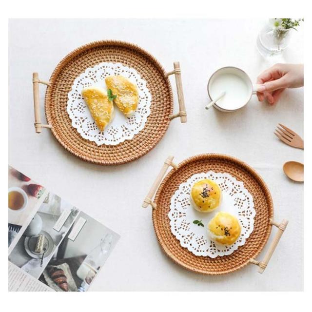 | 天然素材のラタンを編み込んだトレイ。 バスソルトを入れて装飾用、来客時にお菓子をお出しするなどに最適。 S/M/Lの3サイズ展開で使いやすいです。 取っ手付きなので持ち運びもラクラク。 可愛くてディスプレイにピッタリ、飾るプレートとしても。 | |