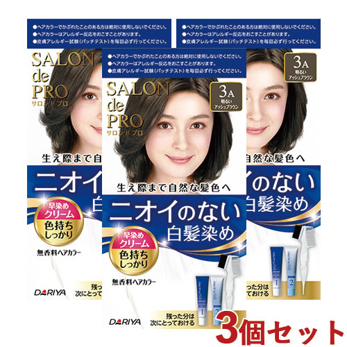 サロンドプロ 無香料ヘアカラー 早染めクリーム 白髪用 3個セット 3A 明るいアッシュブラウン SALON de PRO ダリヤ(DARIYA)【送料込】