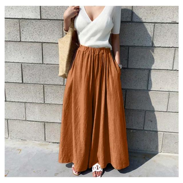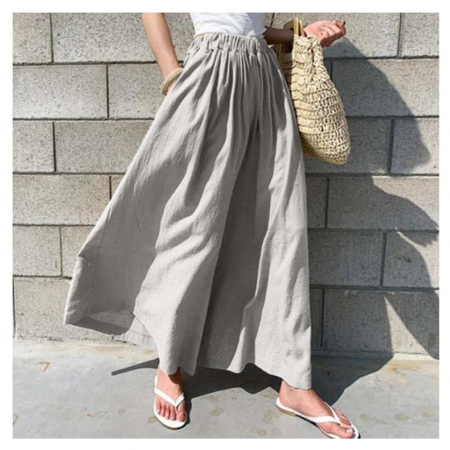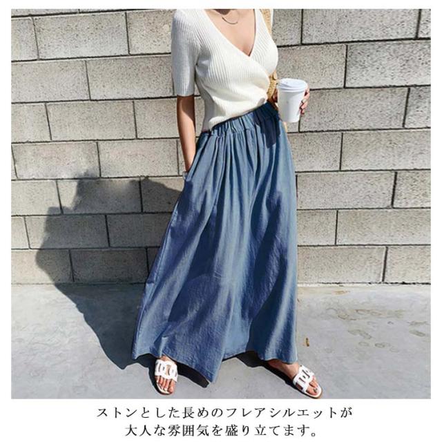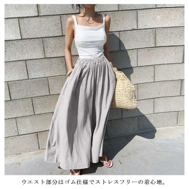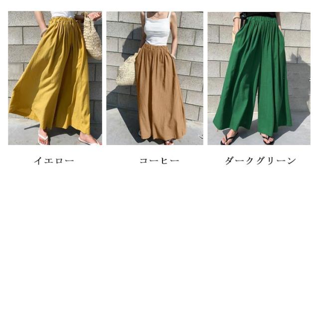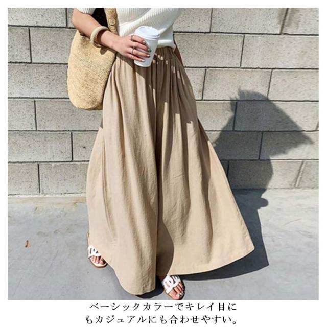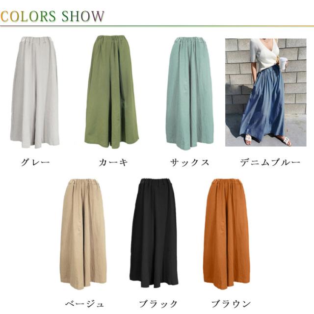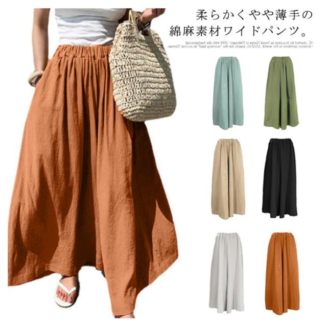 【送料無料】ガウチョパンツ ワイドパンツ レーディス スカーチョ スカンツ ナチュラル 綿麻混 ロング丈 パンツ ボトムス ストレッチ フレア ウエストゴム ゆったり きれいめ 大きいサイズ ミモレ丈 無地 春 夏
