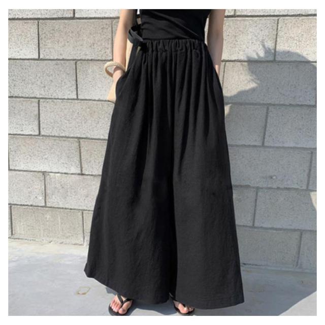 | 柔らかくやや薄手の綿麻素材ワイドパンツ。 ストンとした長めのフレアシルエットが大人な雰囲気を盛り立てます。 ベーシックカラーでキレイ目にもカジュアルにも合わせやすい。 ウエスト部分はゴム仕様でストレスフリーの着心地。 ふんわりとしたシルエットで女性らしさを演出します。 | |
