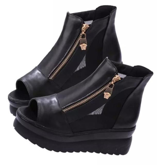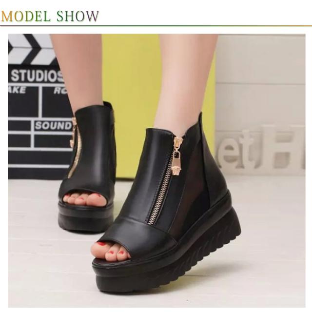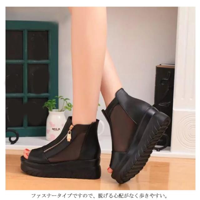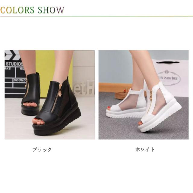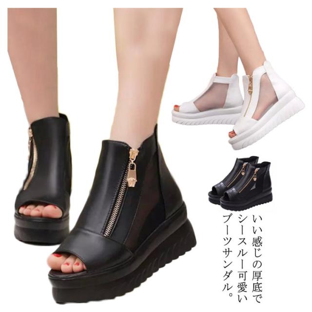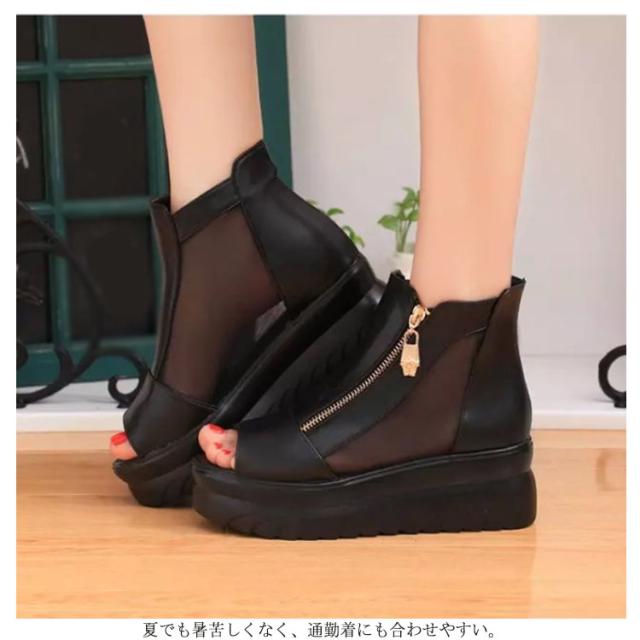 サマーブーツ レディース ブーツサンダル 厚底 シースルー メッシュ 透かし ブーティー ウェッジソール インヒール厚底 ファスナー 透け感 オープントゥ サンダルブーツ レディースシューズ ショートブーツ 靴 痛くない 歩きやすい 6CMヒール