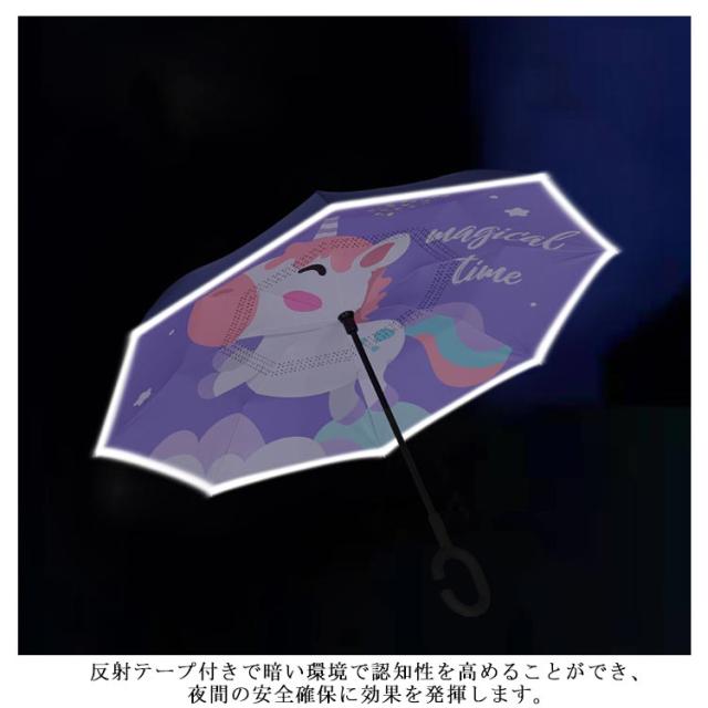 | 超軽量!逆さまに開いて逆さまに閉じる長傘が新登場! 逆さ傘なので水滴が内側に収納されのため、洋服や荷物が濡れることなくて周りの人にも迷惑なし! 反射テープ付きで暗い環境で認知性を高めることができ、夜間の安全確保に効果を発揮します。 持ちやすいC型手元で手首や腕にかけて両手が自由に使えます。 丈夫な内外2枚の布で構成されてのため、UVカット効果と耐風機能更にアップです。 | |