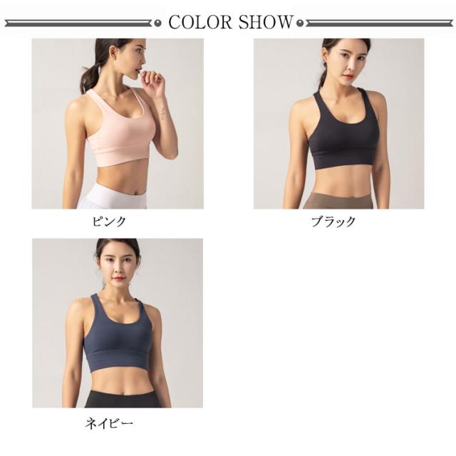 | 締め付け過ぎずソフトな着心地のヨガブラ。 パッド付きでランニングの時も揺れを防いで、しっかりサポート。 後ろはXデザインなので背中をより美しくてセクシーに見せる。 4列4段階ホックタイプなので、フィット感の調整が可能です。 フィットネス、ランニング、ヨガ、ダンスなどで、いろいろなスポーツに大活躍のアイテム。 | |