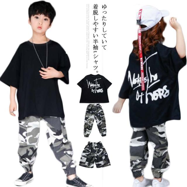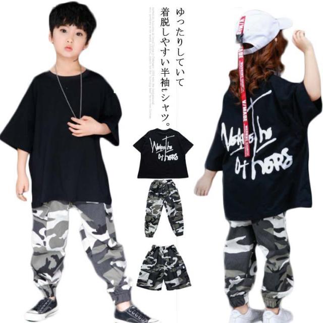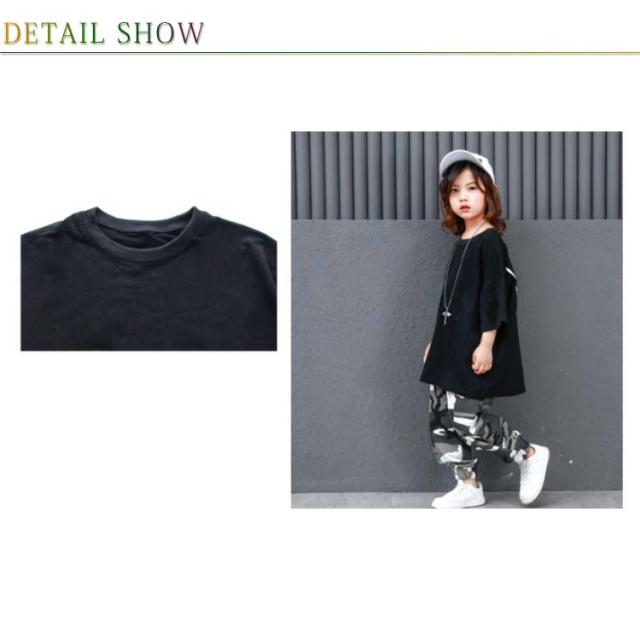 【送料無料】Tシャツ キッズ ゆったり 快適 ビッグシルエット ロング ダンス 衣装 ヒップホップ 無地 子供 運動会 ダンス 半袖 ロングパンツ ハーフパンツ 男の子 女の子 シンプル ジュニア こども服 韓国ファッション